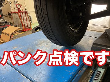 パンク修理のご依頼です 早速ジャッキアップして下から覗いて見ました。 が もう少しでバーストするところでしたね。 気が付いてよかったです。 点検はお気軽にお声掛けください。