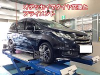 オデッセイでタイヤ交換とアライメント