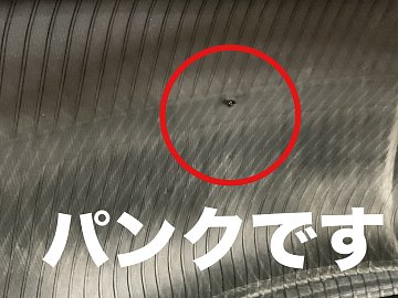こんにちは今日はパンクの事例です。綺麗に釘が刺さっていました。すぐに気付かれたということ場所が良かったこと無事、修理することが出来ました。釘などが刺さった場合、カシャカシャと音がすることが多いです。こういった音も参考にしてください。安全な場所に止め、確認することが重要です。点...