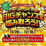 当店のHPをご覧いただきありがとうございます♪ 11月26日(土)から12月18日まで、「大抽選会」を開催いたします 期間中にタイヤを4本ご購入いただきご応募頂くと、抽選でアマゾンギフト券が当たります! この機会に是非、当店をご利用くださいませ!! 皆様のご来店、 心よりお待ちしております。 ...
