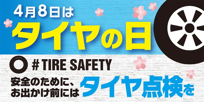 4月8日は「タイヤの日」。空気圧・ミゾ・キズなどがないか点検しましょう!