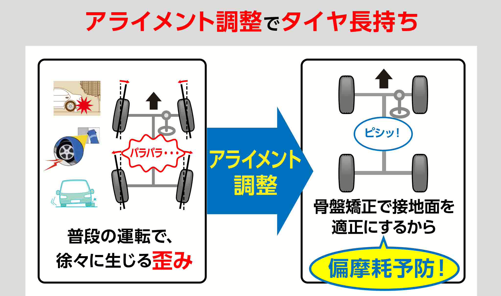 『浜松』『タイヤ交換』『タイヤ長持ち』『アライメント』『偏摩耗』『専門店』