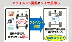 いつもお世話になっております。 浜松市中区高林にありますブリヂストンタイヤの専門店 「タイヤ館 浜松高林店」です。 今回ご紹介するのは「アライメント調整」です。 「アライメント」とは車の足回りからのタイヤの取付角度の事です。この取付角度は、足回り部品の劣化や日常走行での大小衝撃の積...