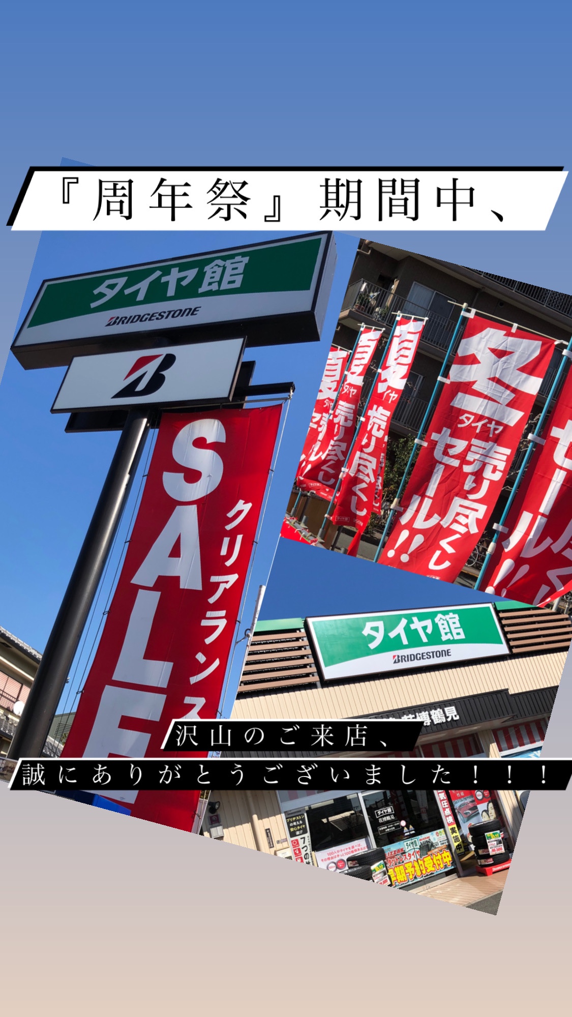 今後もキャンペーンやセール情報などもHPまたは店頭にてお知らせ致しますので、引き続きタイヤ館花博鶴見をよろしくお願い致します。