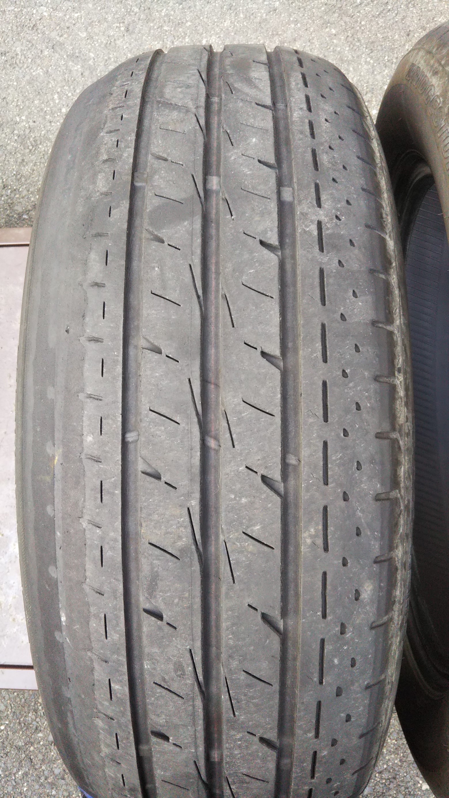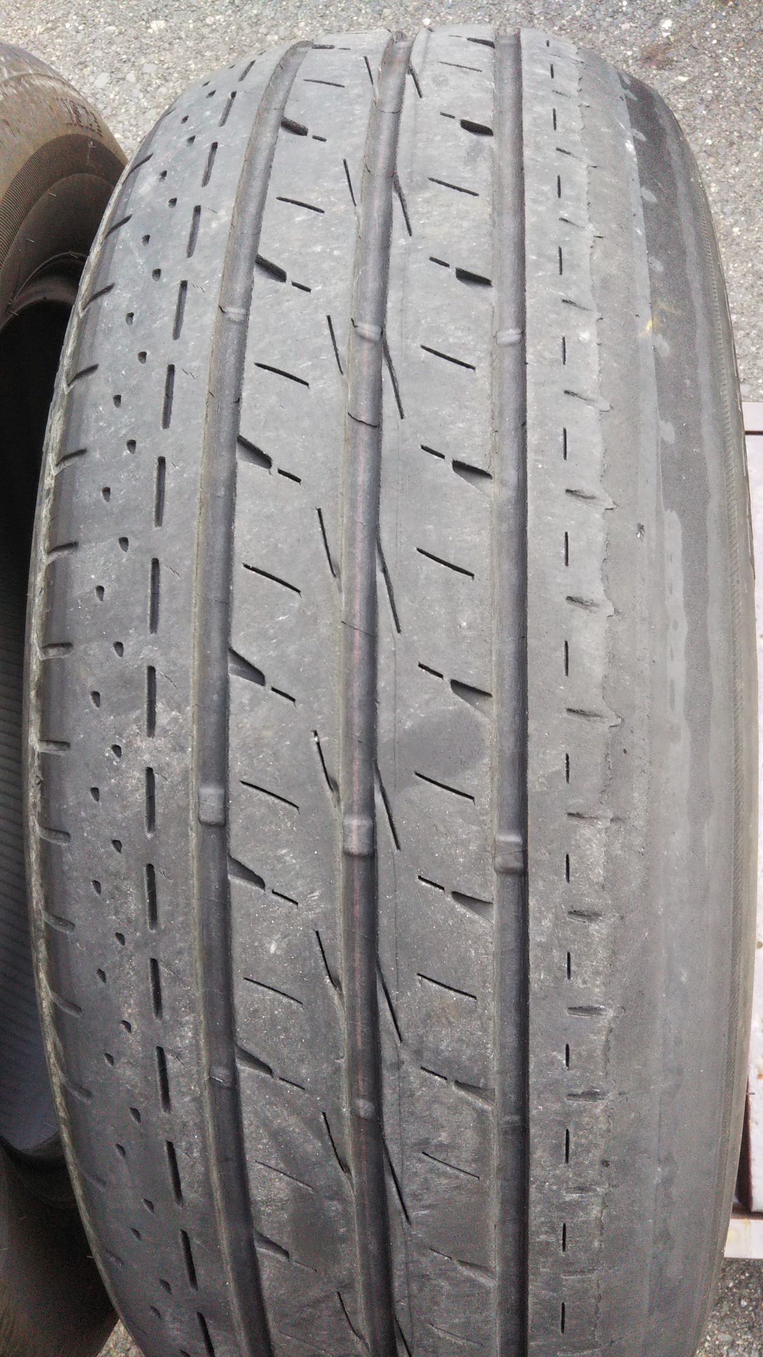 この画像はアライメント不良による外減りの症状があるタイヤです。