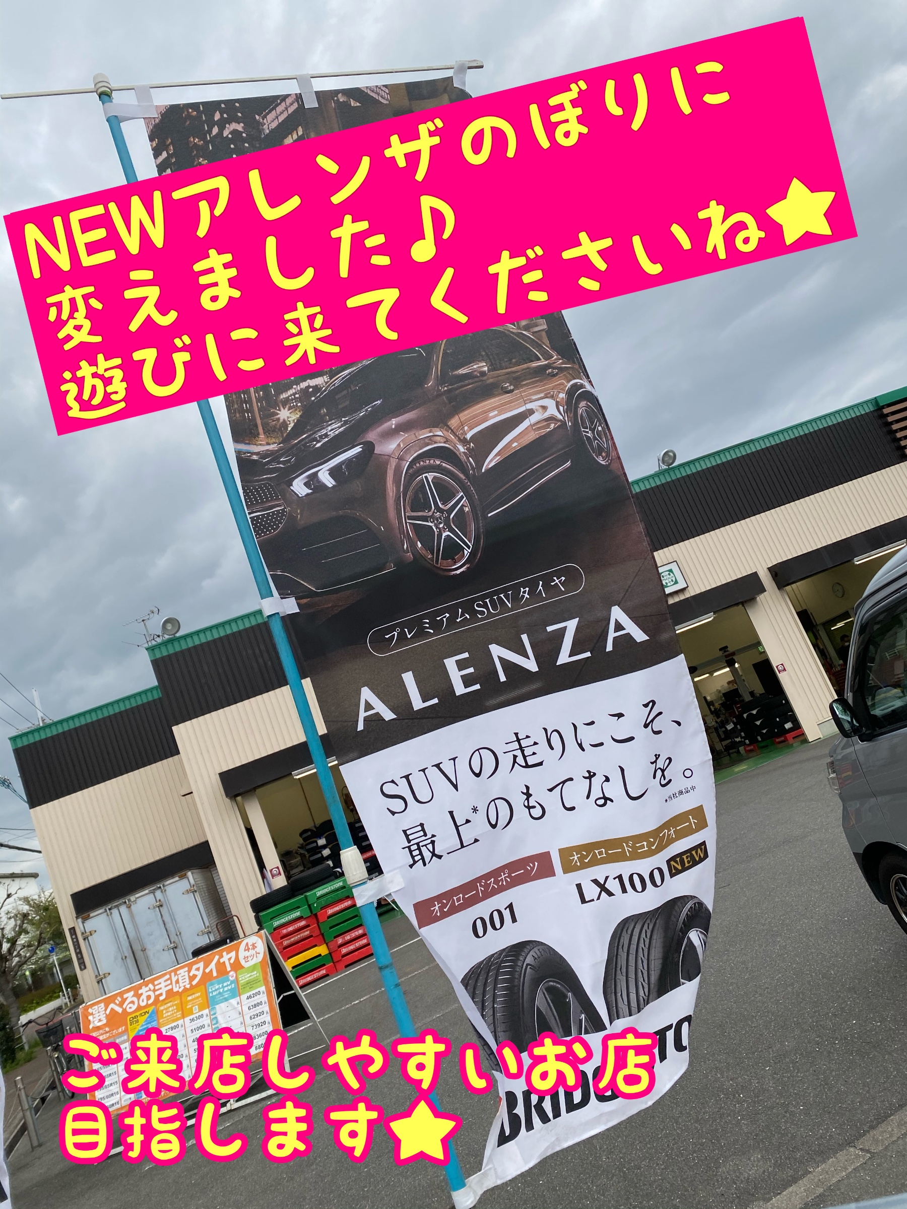 のぼり変更♪ ポスト 2021年4月12日 のぼりを SUV専用設計のアレンザLX100に切り替えました(*´艸`)♪ のぼりを変える事で、イメージががらっと変わりますね♪ これからもちょっとずつお店を変えていきますので 好ご期待をꉂꉂ(๑˃∀˂๑) 担当:きっしゃん