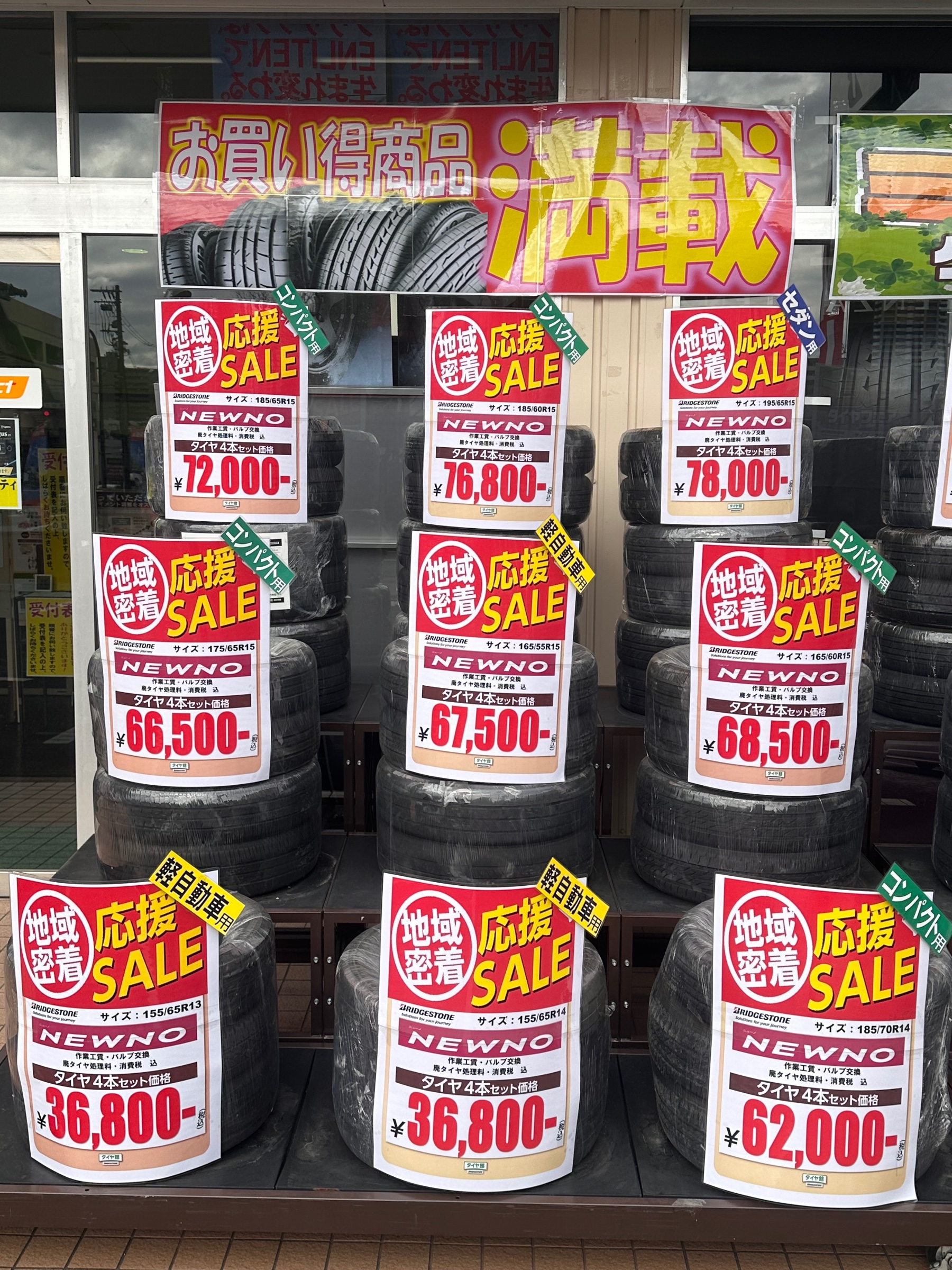 店頭に入ってすぐに対象商品のサイズ一覧、価格も掲載しております!!