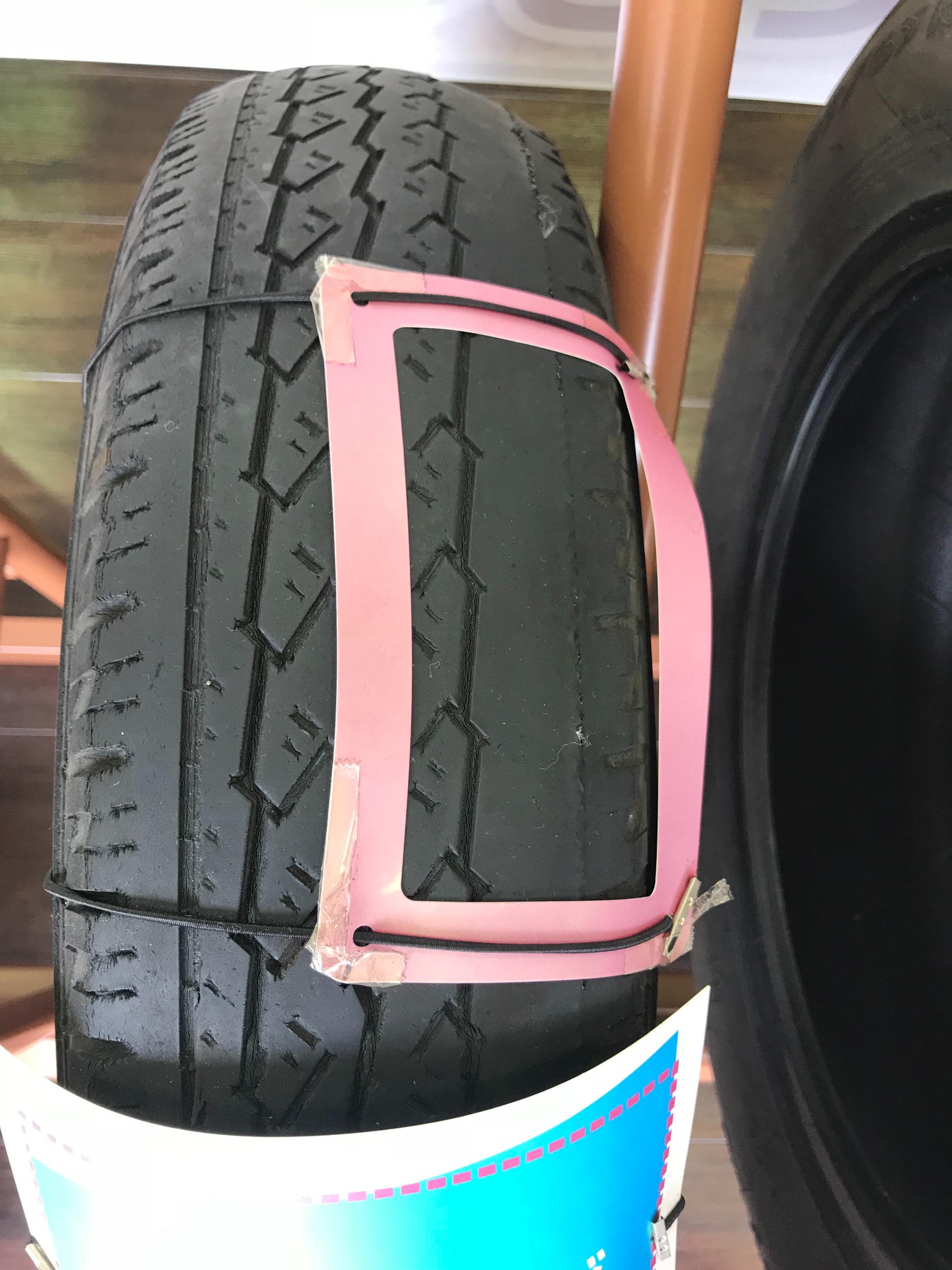 写真を見て頂くと、左右のタイヤの減り方が違うのがお分かりでしょうか・・・