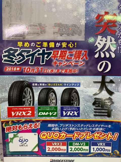 当店では10/30(火)までお得なスタッドレス早期割引キャンペーンを