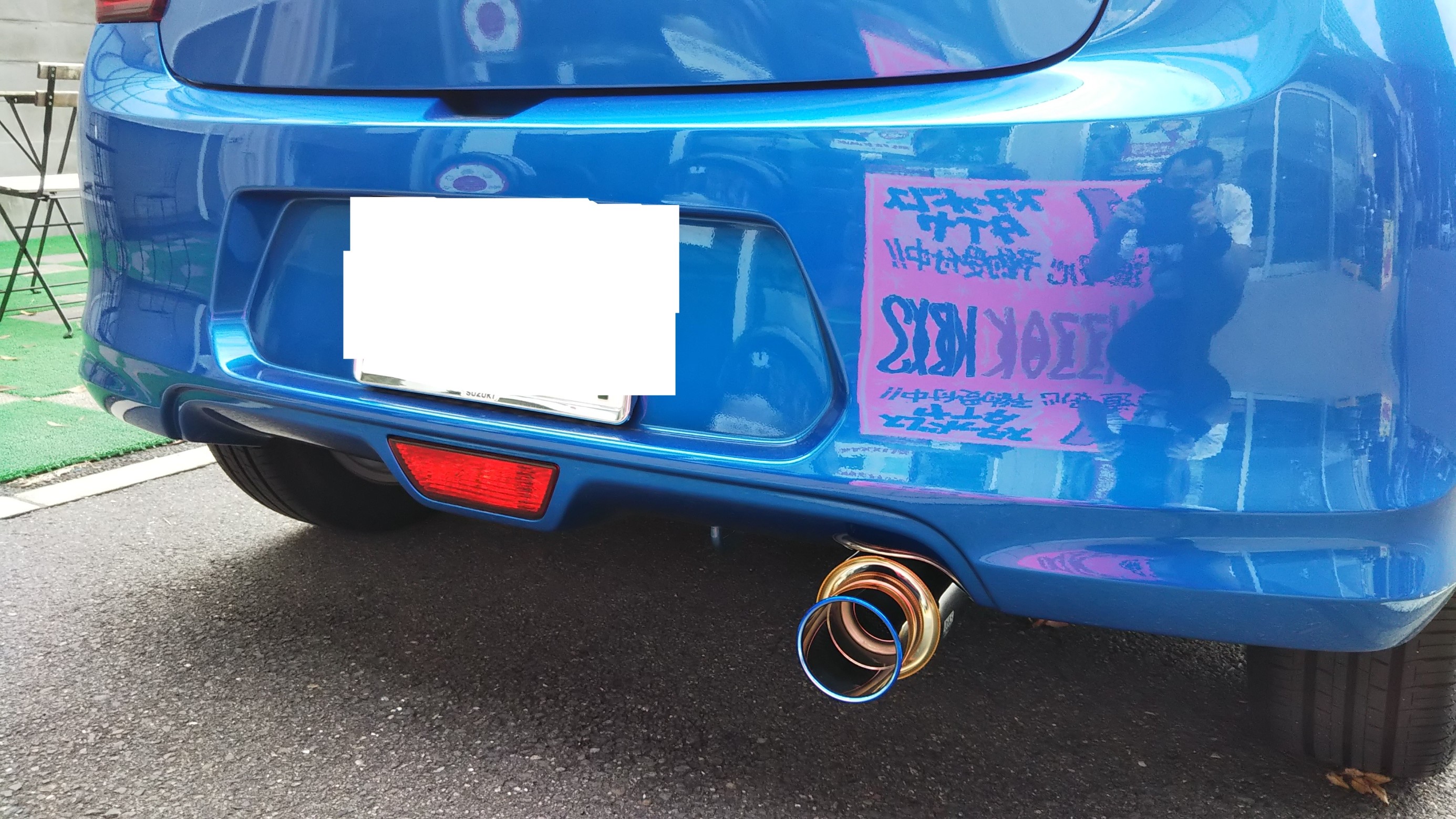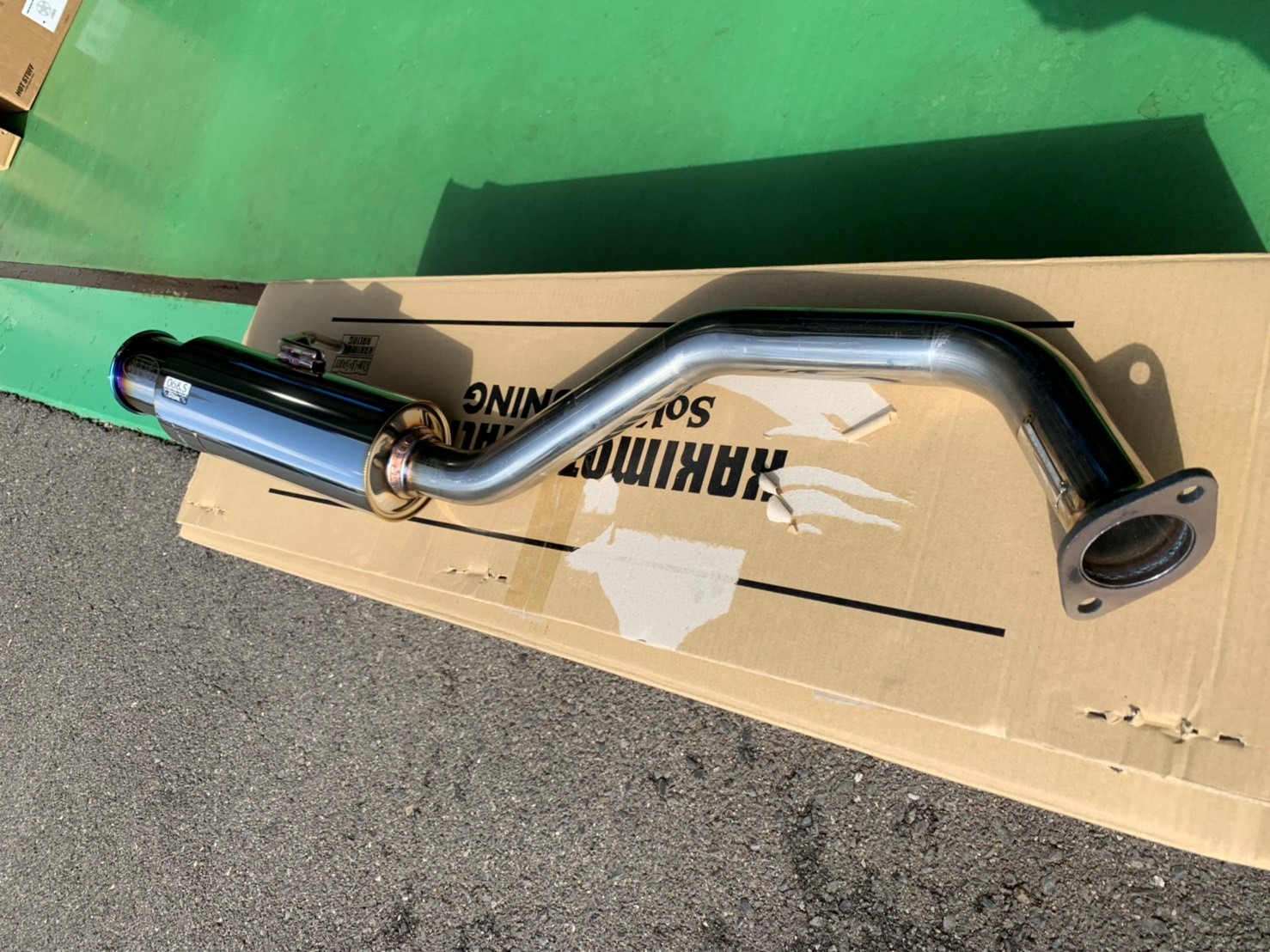 【マフラー交換】 ポスト 2018年11月2日 こんにちは。整備担当細川です。 今日は、先日スイフトの【マフラー交換】を させて頂いた時の画像です。 マフラーはカキモトレーシングの GTbox06&Sです。 見ての通り、かなりの迫力です。 サウンドもなかなか良い音でした。 当店ではマフラー交換などの作業も 可能ですので、一度お問合せ下さいませ!! 担当:細川