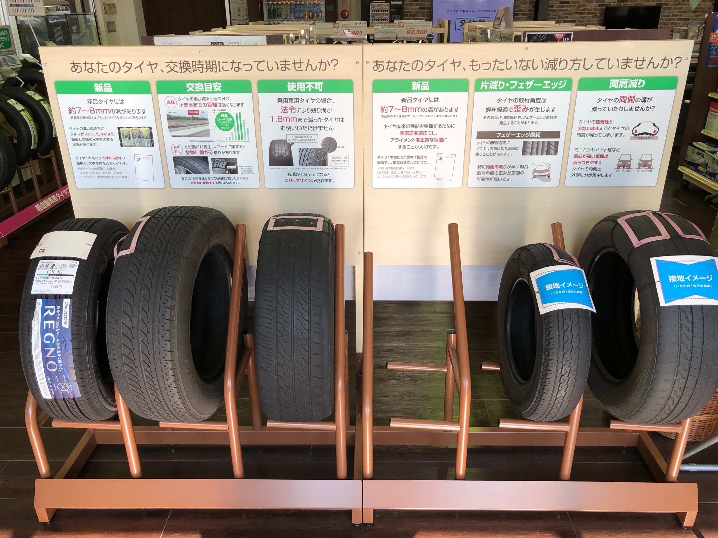 無料で安全点検致します!!! ポスト 2018年11月8日 当店では安全に走行して頂くために無料で安全点検を行っております! タイヤの空気圧や残ミゾのチェック、偏摩耗・ヒビ割れ状態のタイヤの点検や エンジンオイル、バッテリー、ワイパー、エアコンフィルターなども点検致します! タイヤの空気圧は放っておいても空気圧が減っていき、タイヤの偏減りの原因にもつながりますので、 是非一度当店にご来店下さいませ! カテゴリ:タイヤ関連 担当:梶原