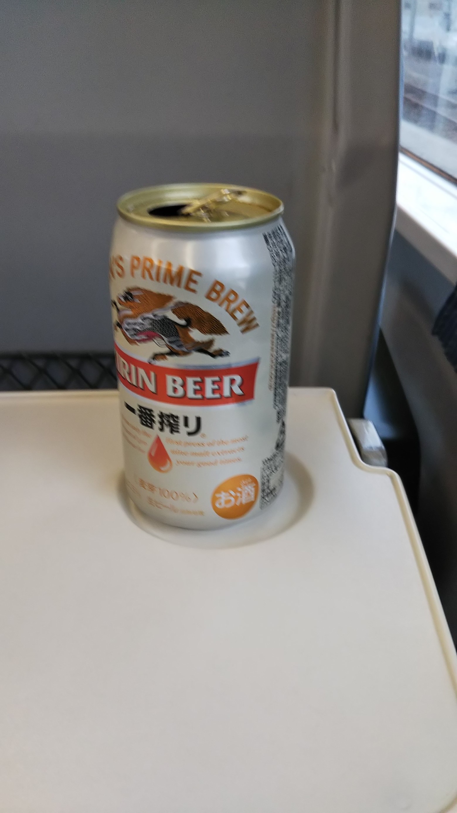 帰りは電車の中で、至福のひととき!やっぱりビールです!!
