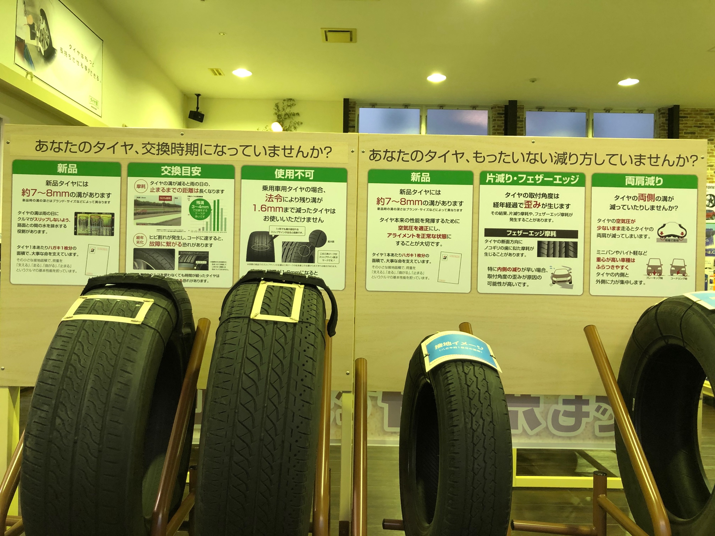 タイヤの空気圧や残ミゾのチェック、偏摩耗・ヒビ割れ状態のタイヤの点検や