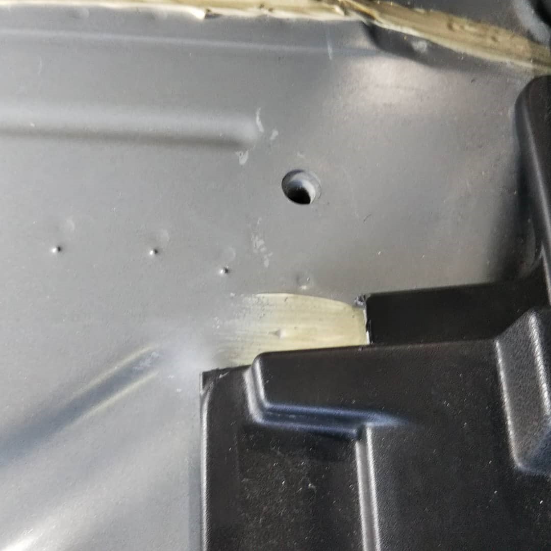⑦シートベルトアンカーとトランクブレースを共締めして取付けます