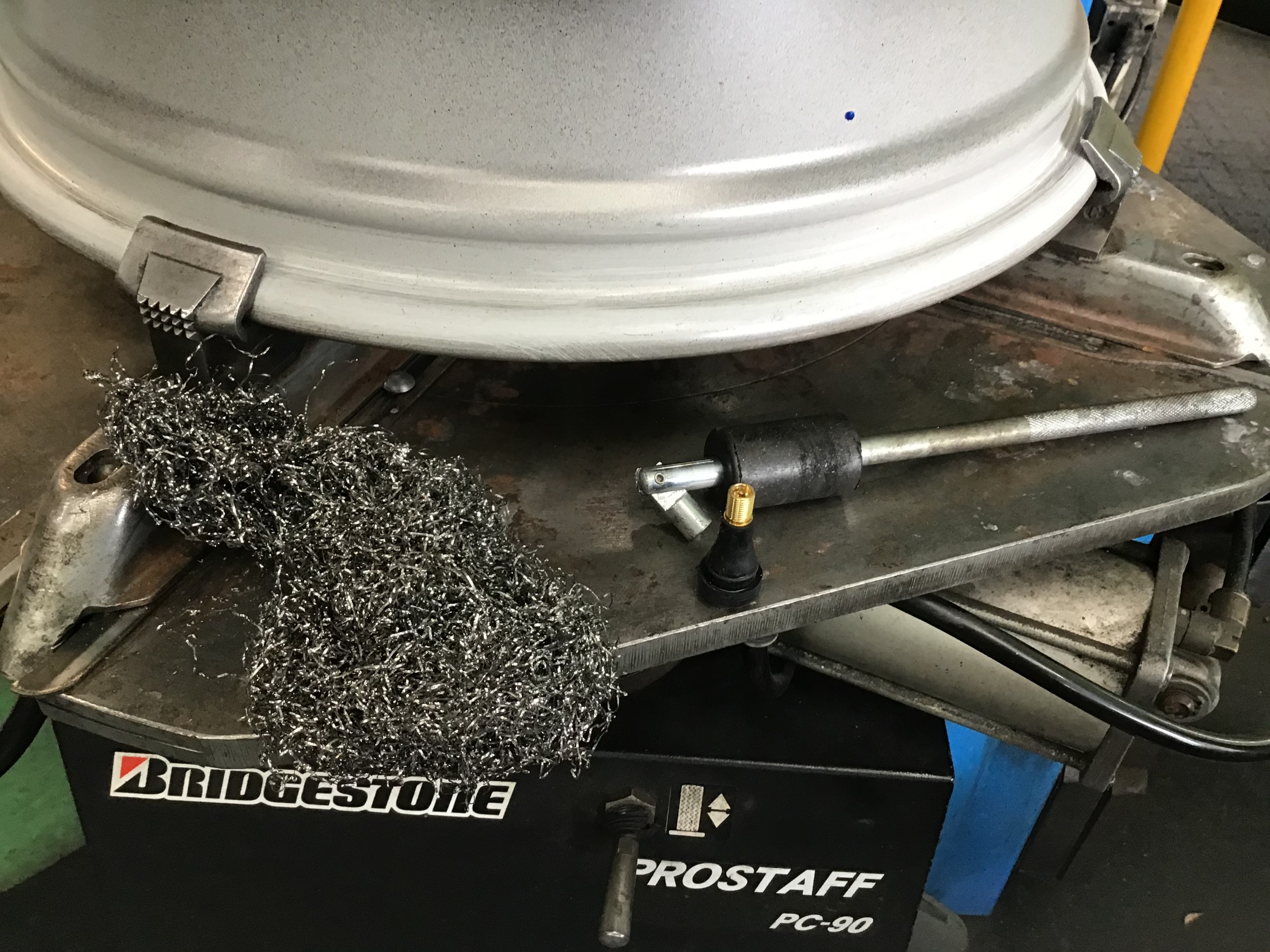 では作業続きですが、まずはホイールのリム部分のゴムカスを金属たわしでゴシゴシとしっかり