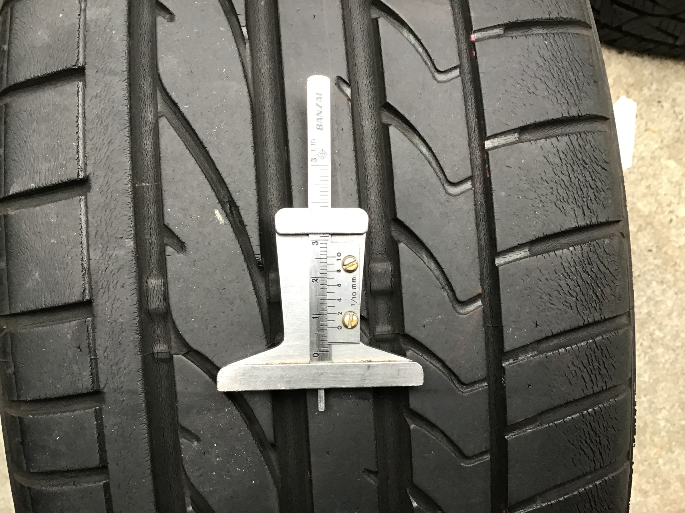 約5mm程度あり、ゲージの下のスリップサインまでは、約3mmあり、溝的には十分ですが、