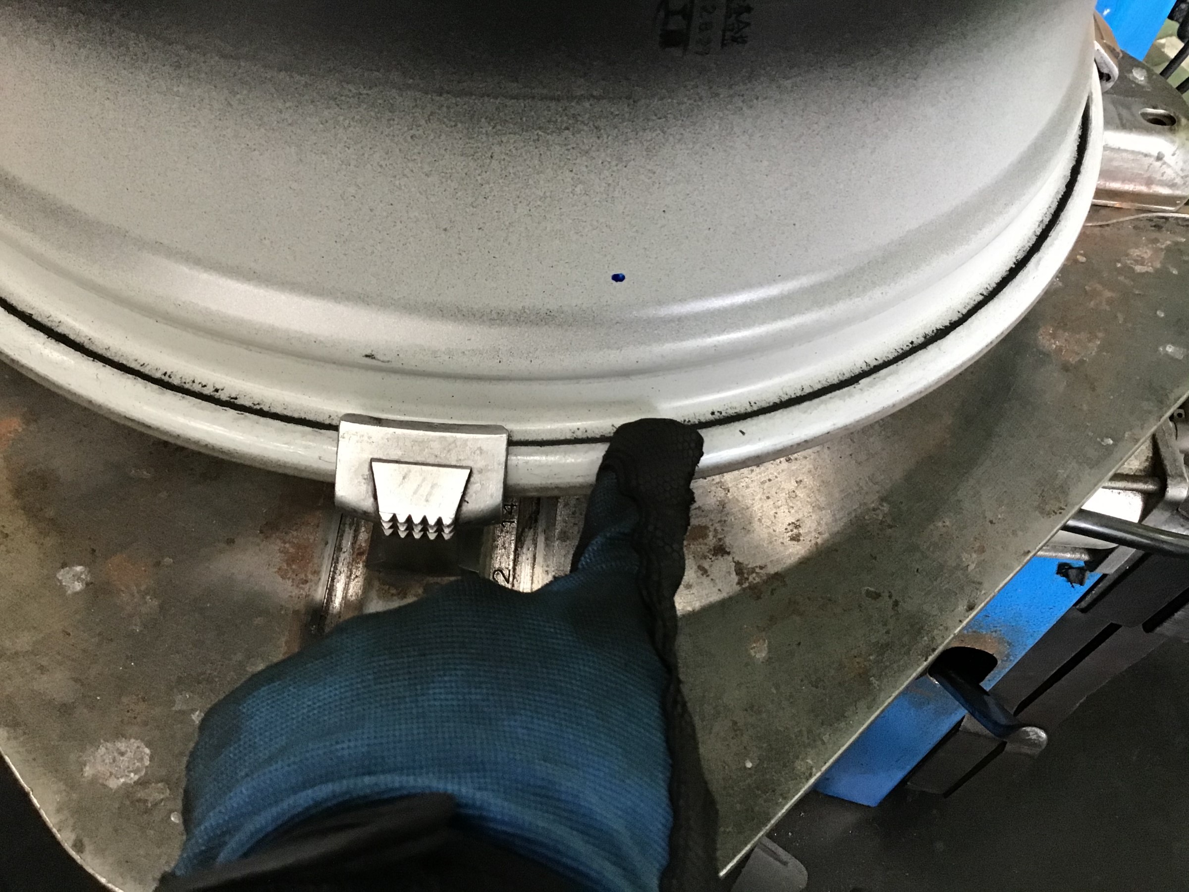 このように円周上にカスがしっかり付着してます。このままタイヤを組付けしますと、エア漏れ
