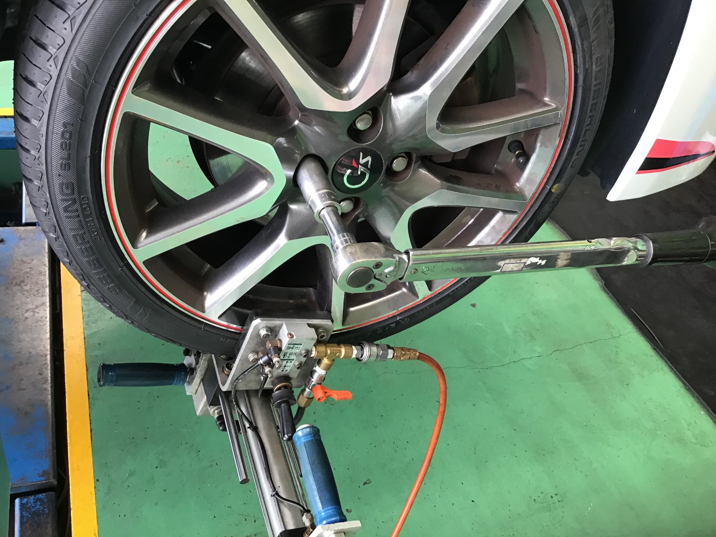 では早速タイヤ交換作業です。まずはタイヤを外していきます。