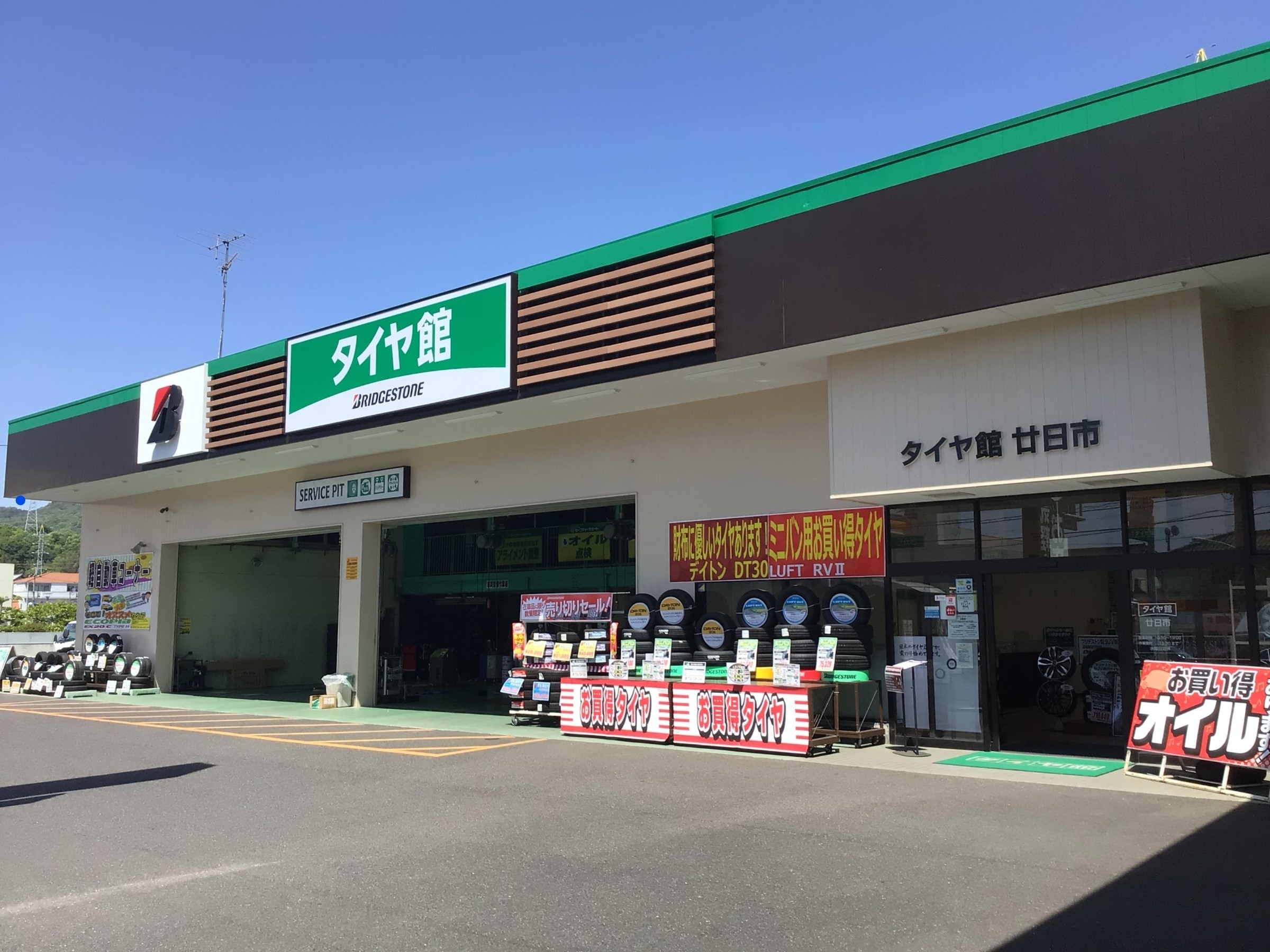 こんにちは!廿日市市宮内交差点近く、県道30号線沿いにあるタイヤ館廿日市です。