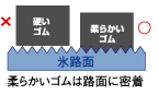 そのため、タイヤのゴムが柔らかく、路面の凹凸に合わせて密着できることが重要です。