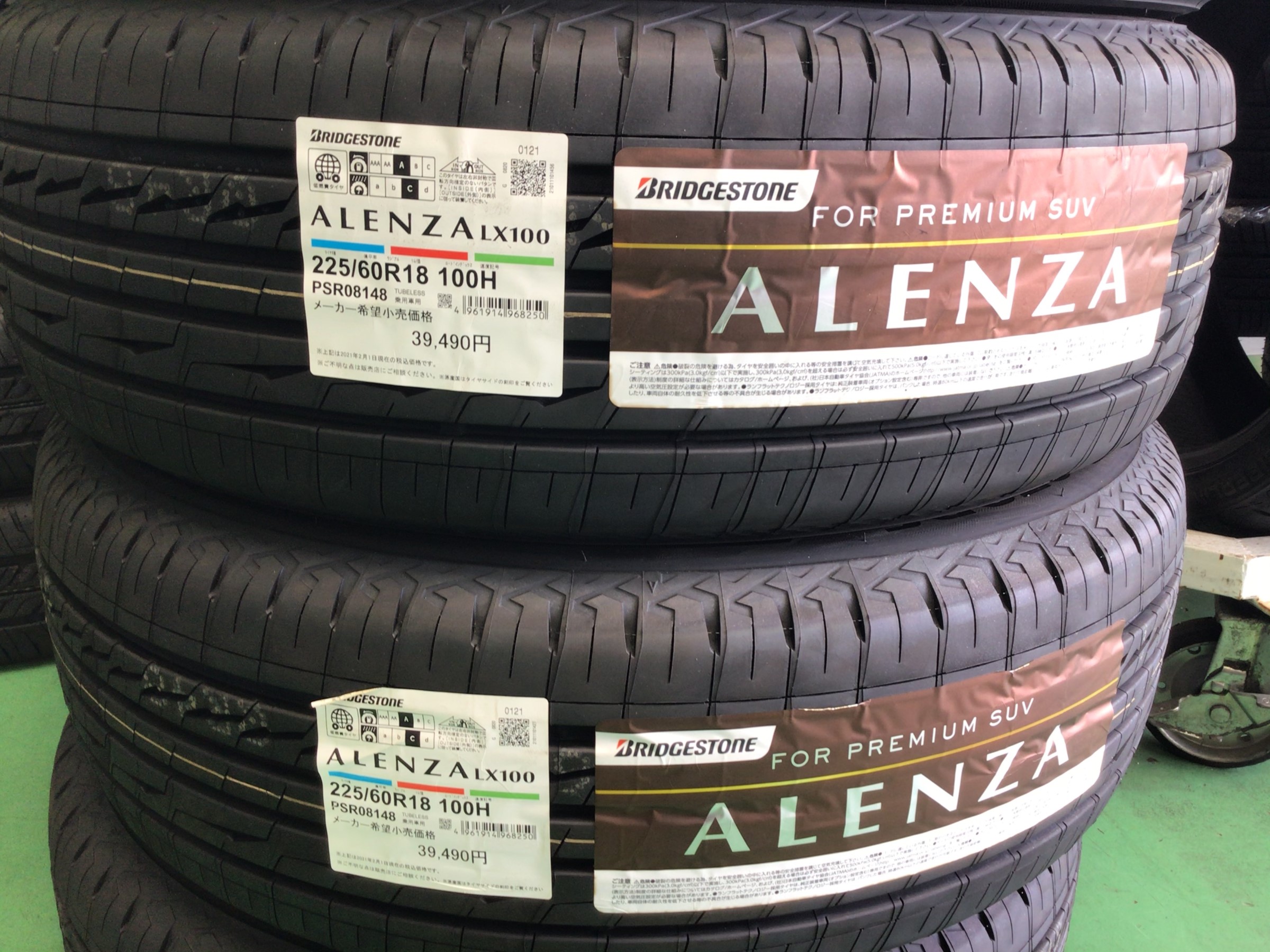 タイヤの銘柄は、ブリヂストン アレンザLX100で、サイズは225/60R18です。