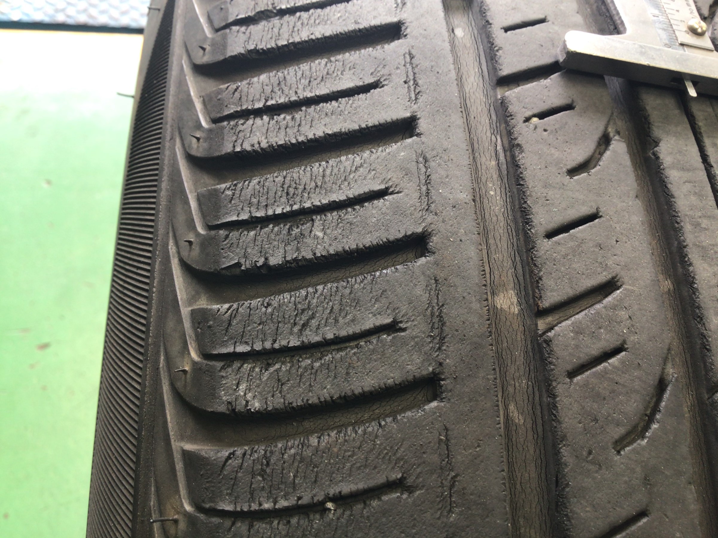 残溝的にはもう少し使用できるレベルですが、タイヤをよく見ると、こまかな亀裂が入って