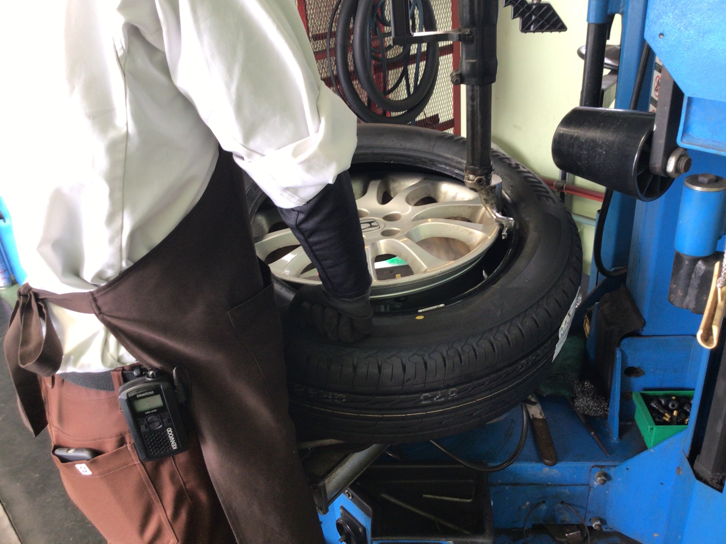 交換清掃後はタイヤを1本ずつ組みこんでいきます。
