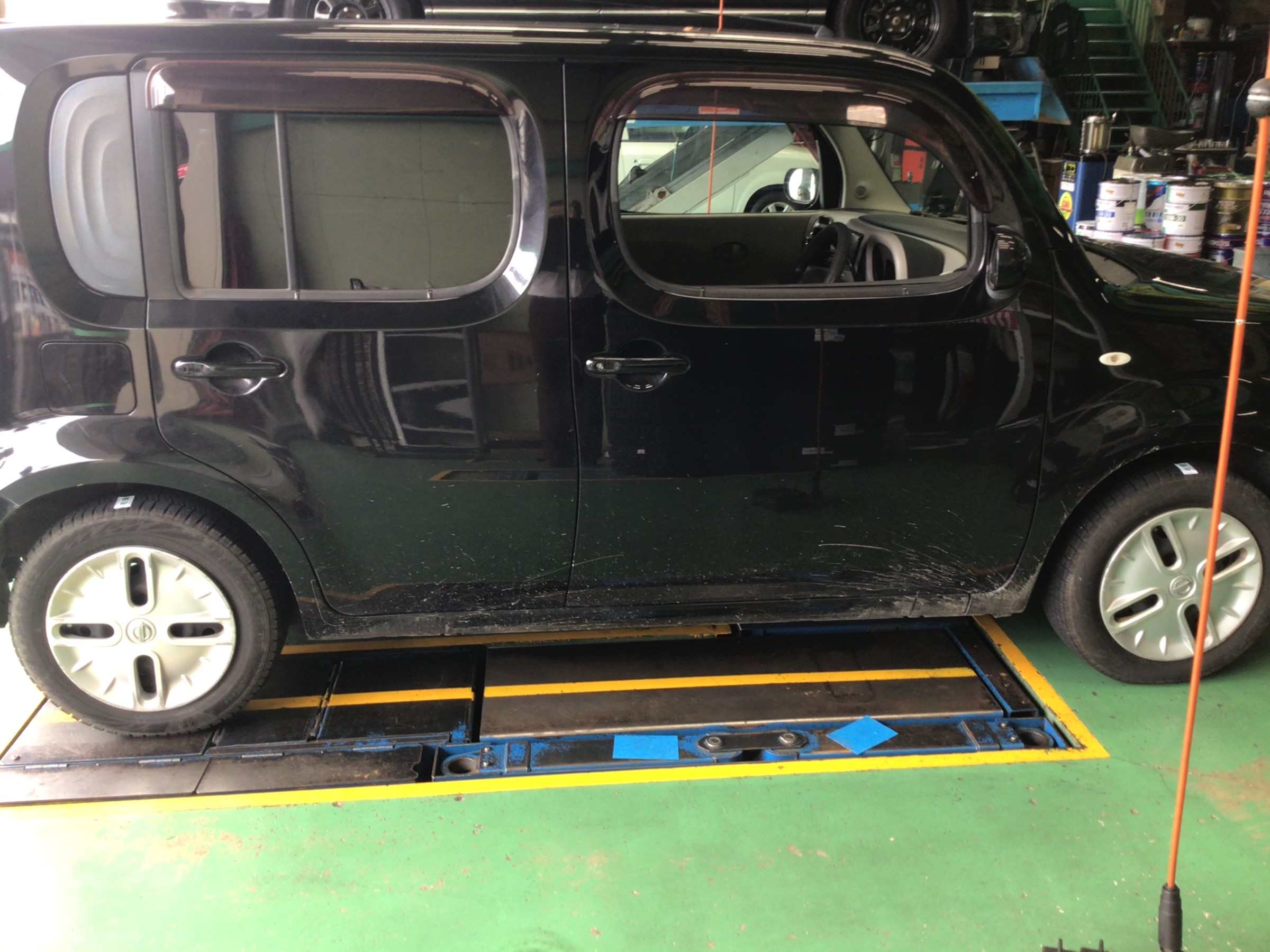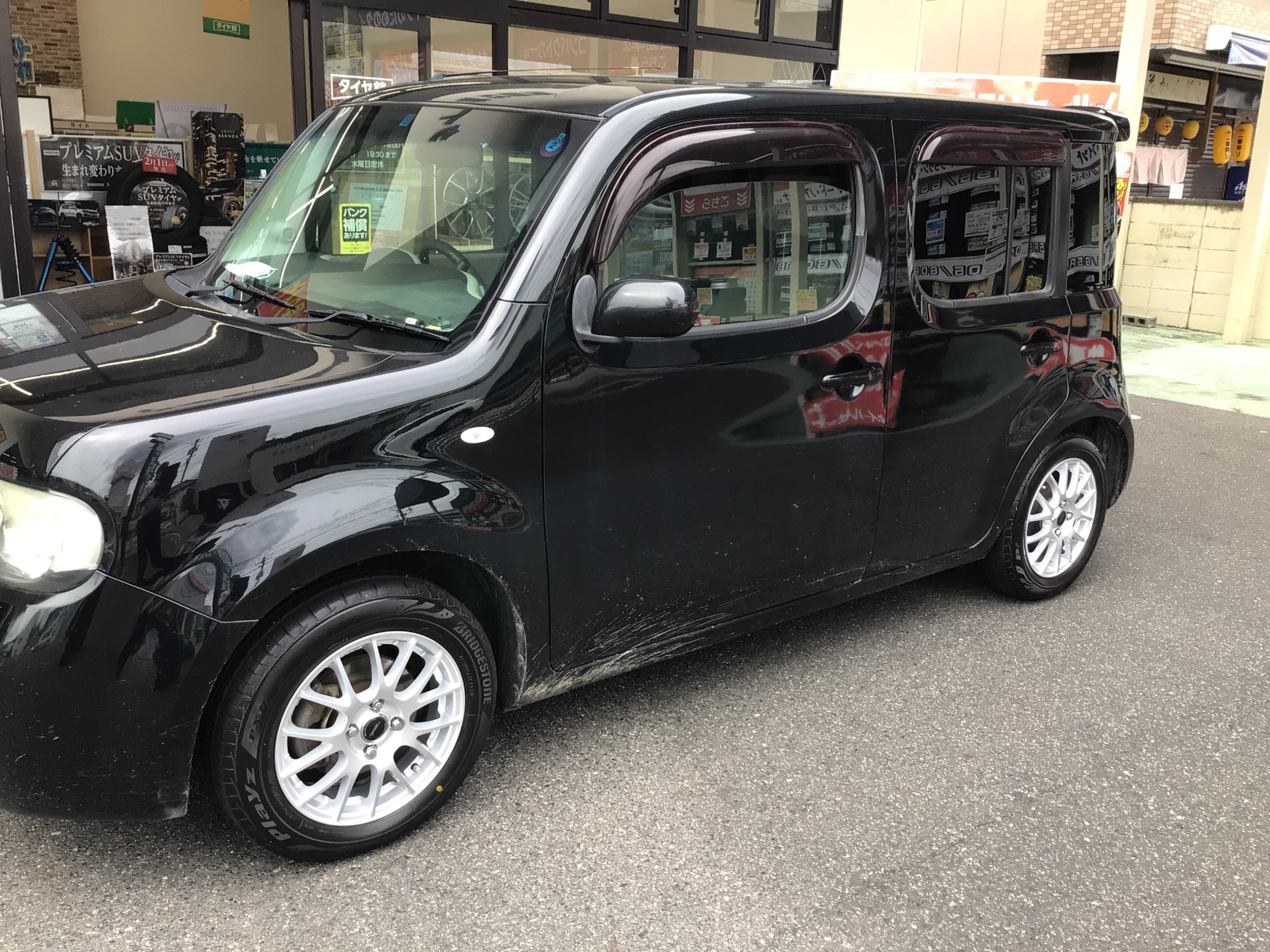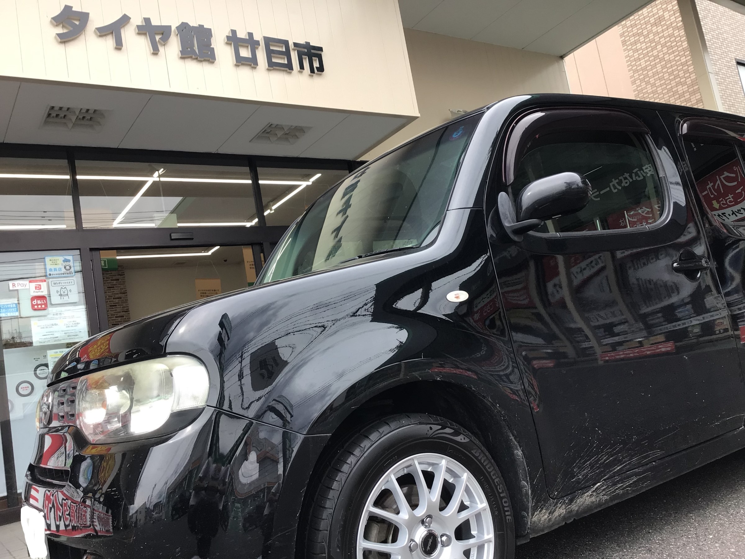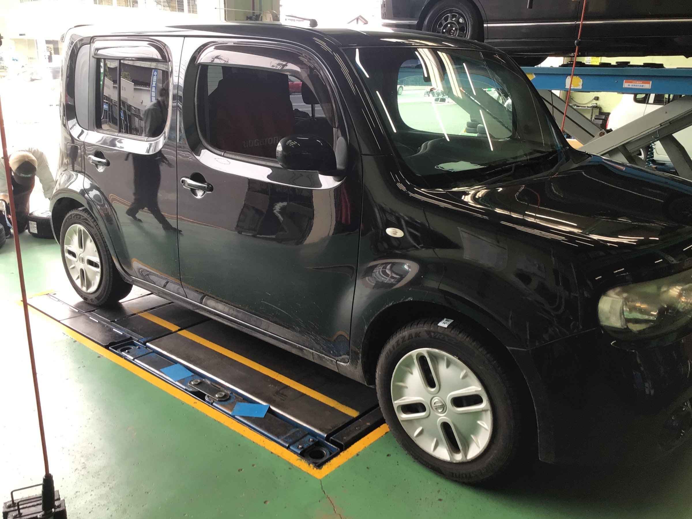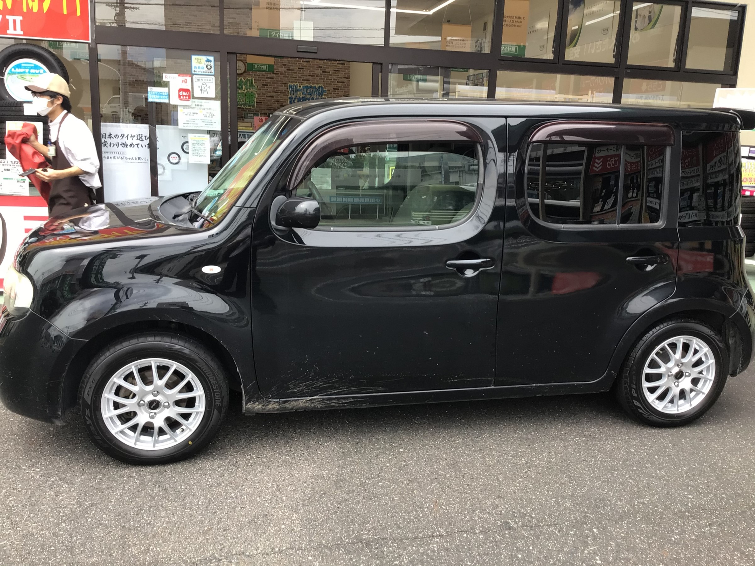 さて本日の話題はというと、日産 キューブにアルミホイールセット取付を