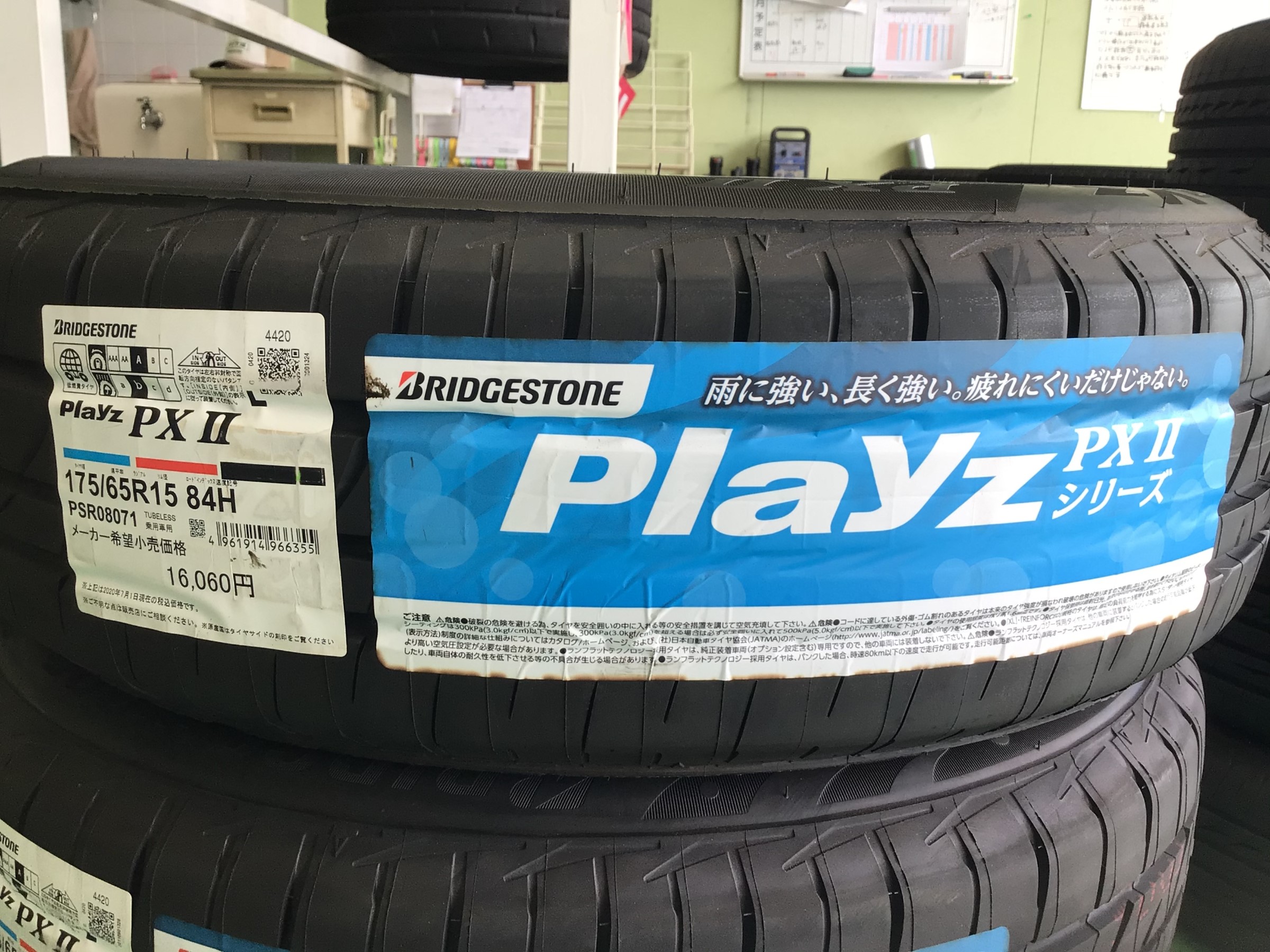 タイヤの銘柄は、ブリヂストン プレイズ PXⅡで、サイズは175/65R15です。