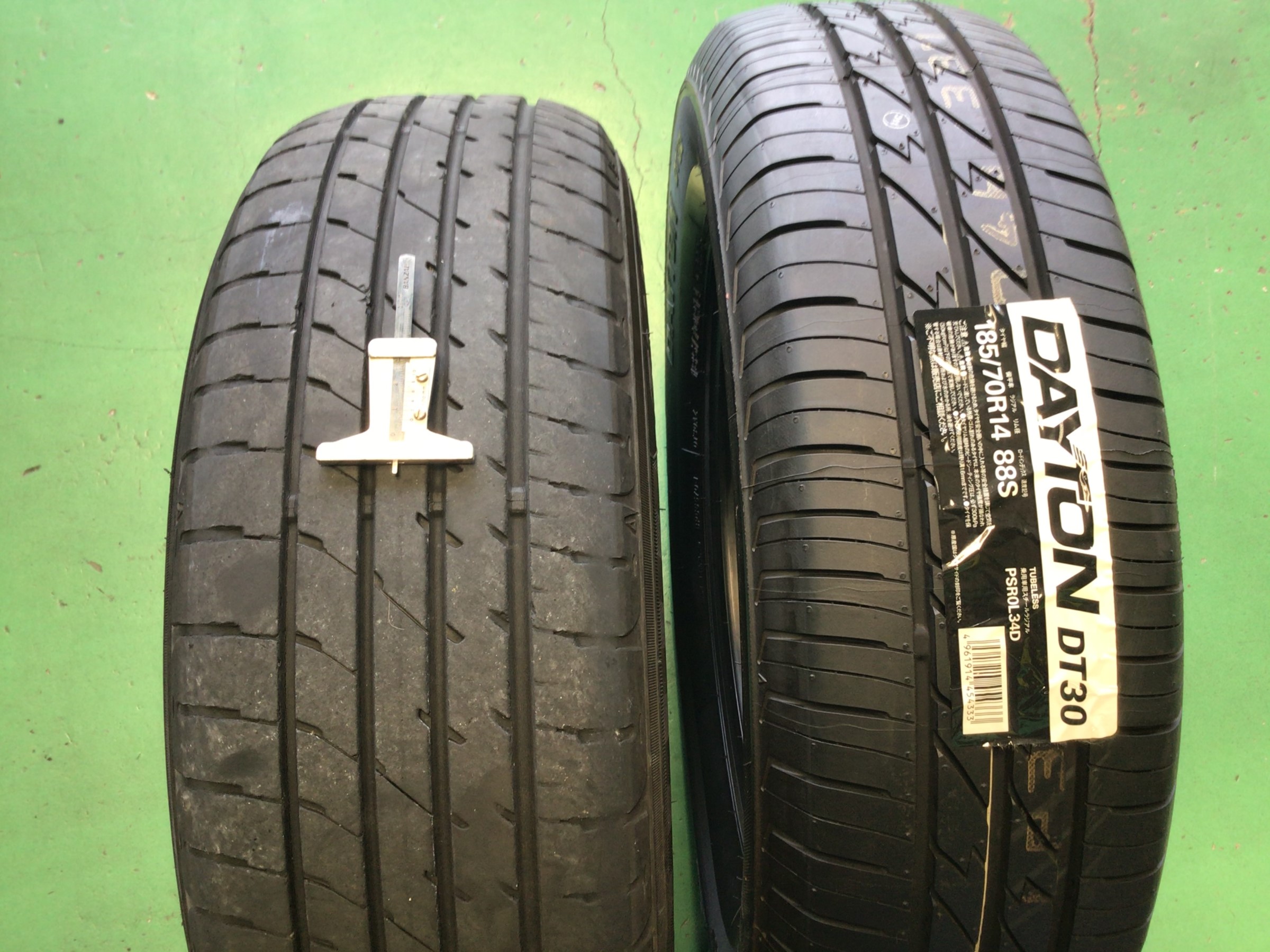 タイヤの銘柄は、デイトン DT30で、サイズは185/70R14です。