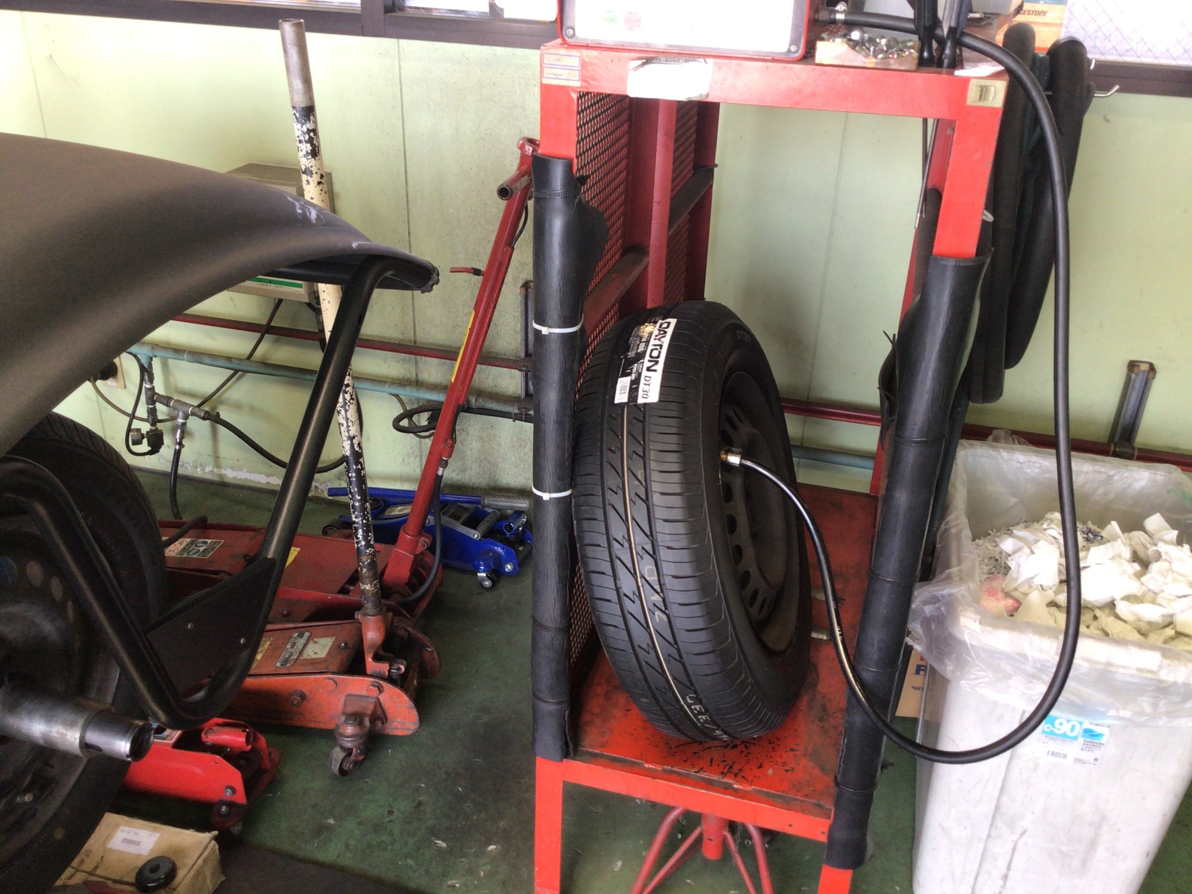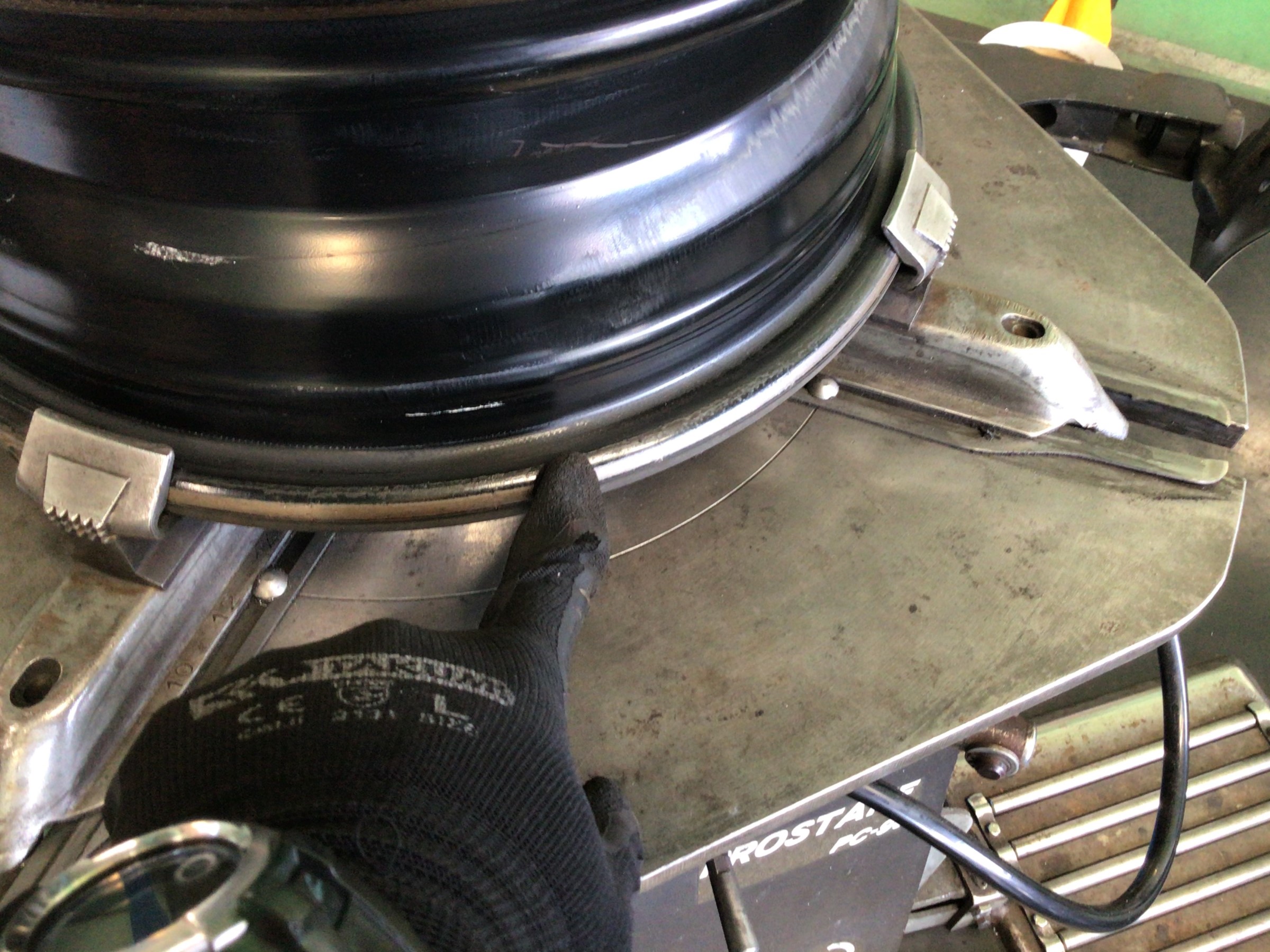 交換清掃後はタイヤを1本ずつ組みこんでいきます。