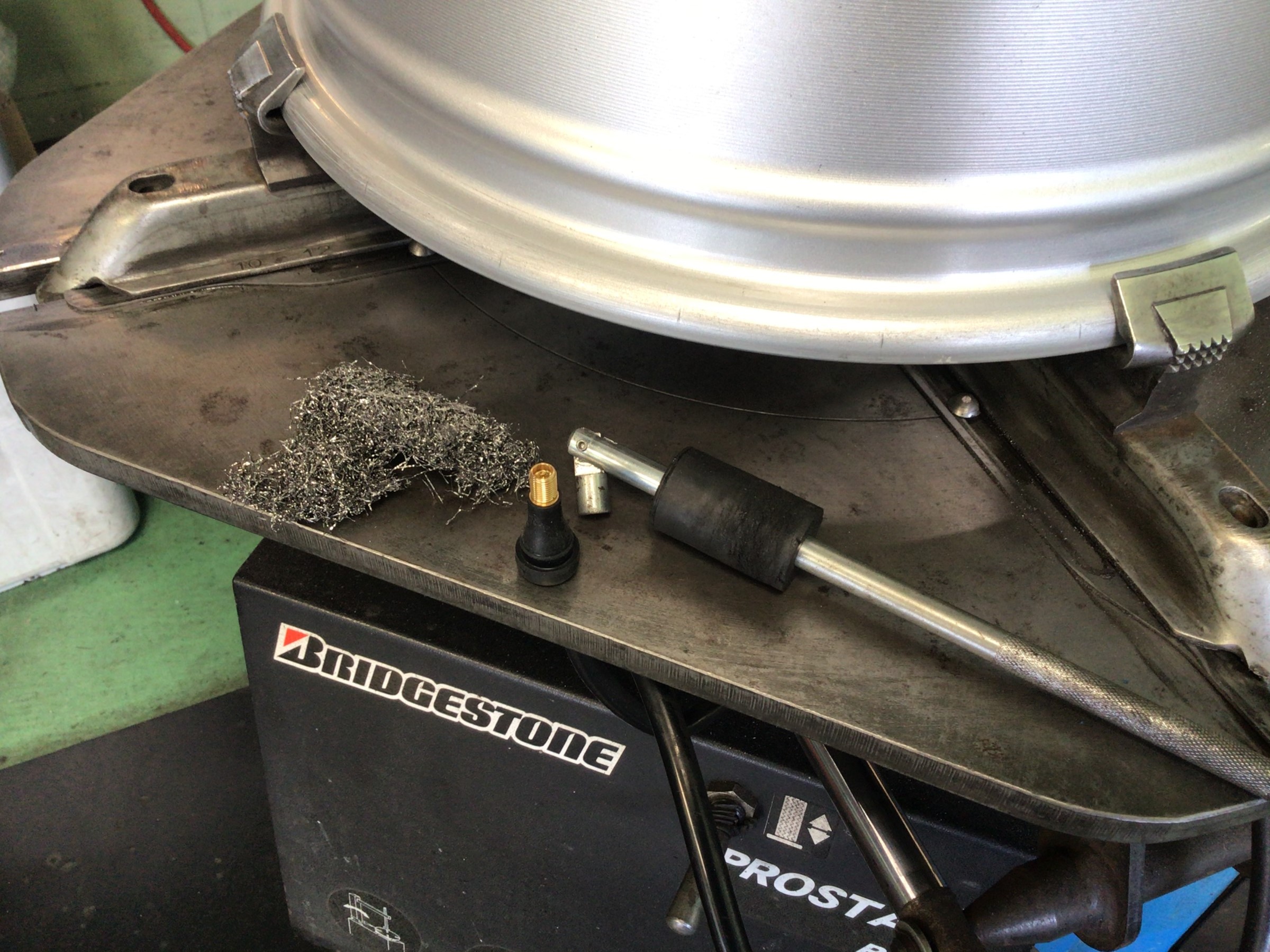 このカスが付着したままタイヤを組付けしますと、エア漏れの原因となりますで、