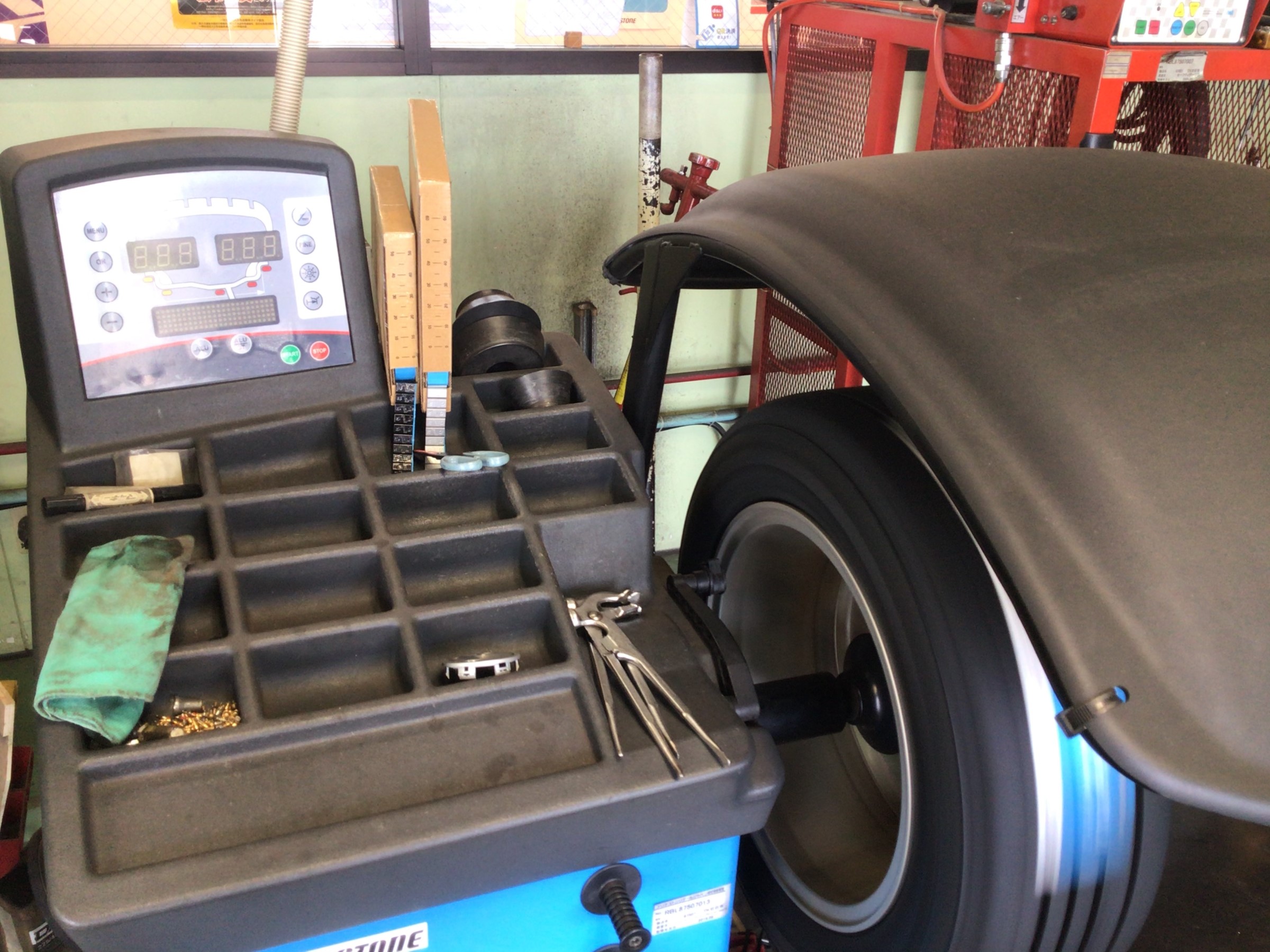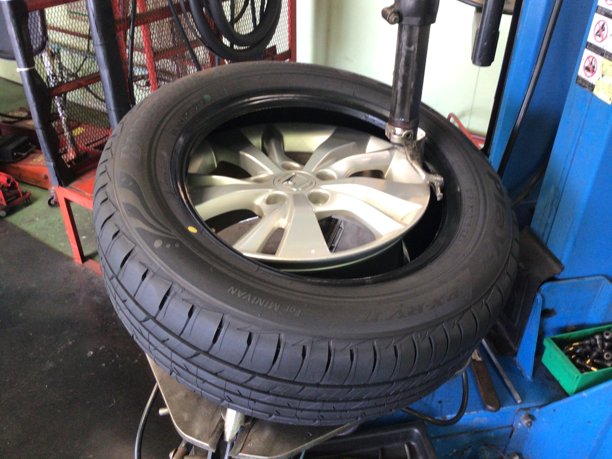 交換清掃後はタイヤを1本ずつ組みこんでいきます。