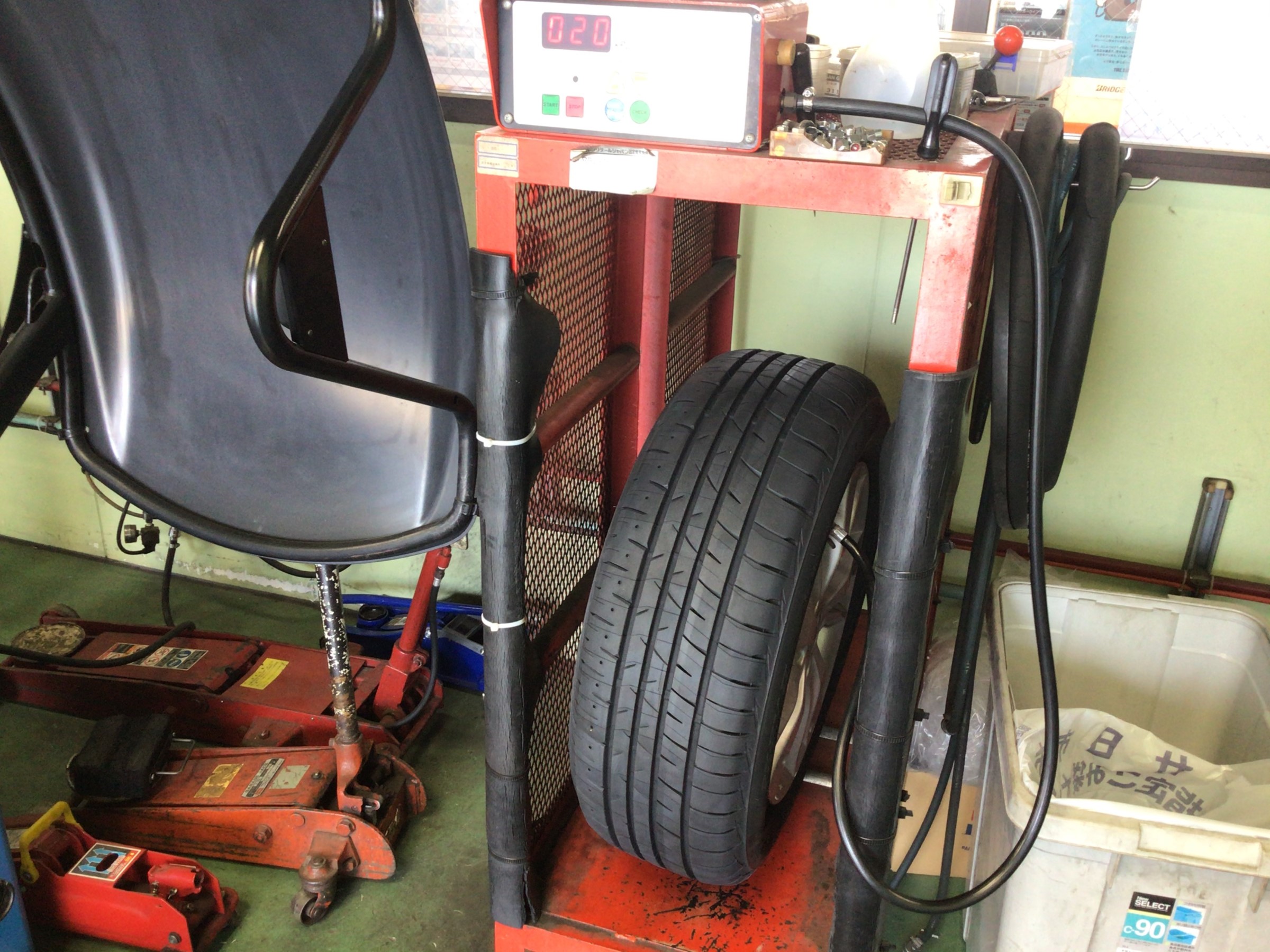 組付け後はエア充填作業ですが、エア充填は危険が伴います!