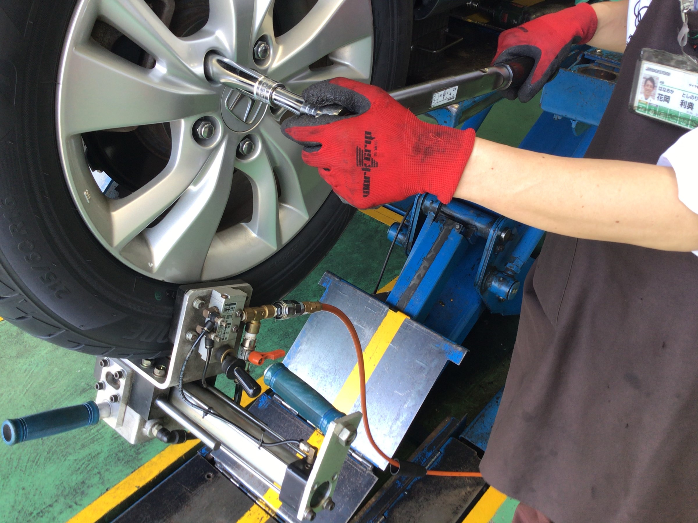 では早速タイヤ交換作業です。まずはタイヤを外していきます。