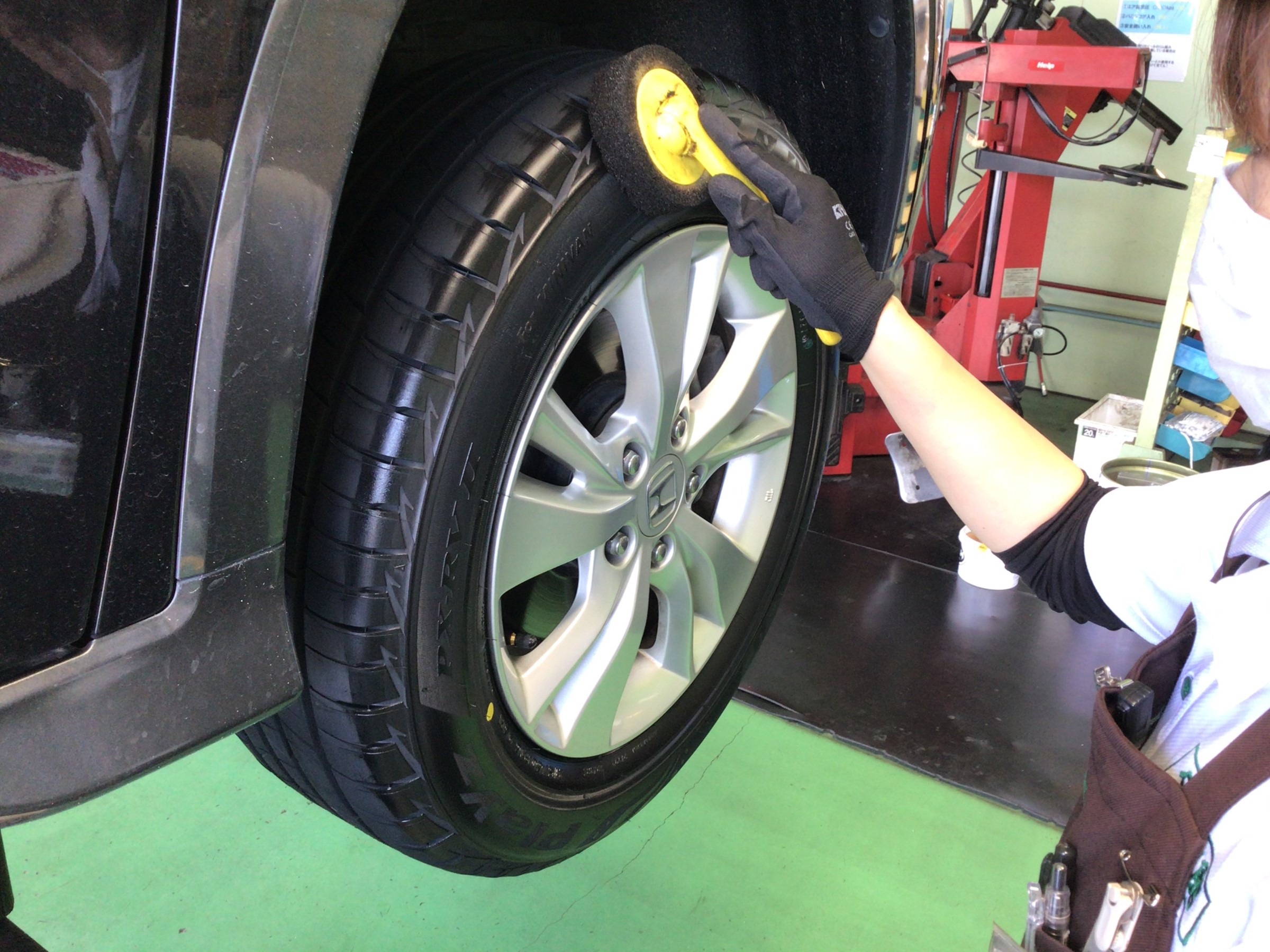 最終仕上げとして、ホイールを清掃しタイヤワックスを塗布して終了です。