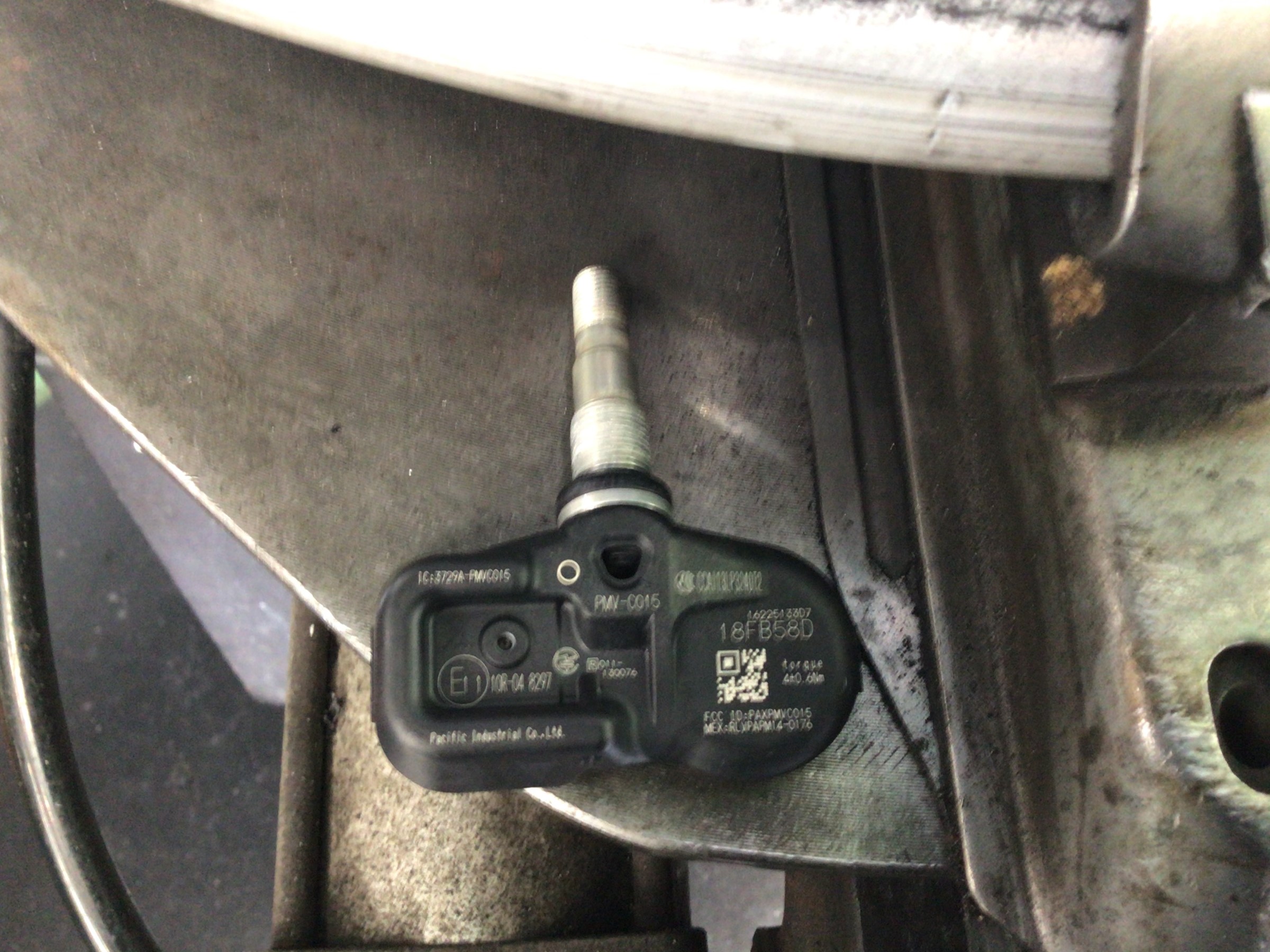 空気圧センサーというやつです。ホイールに装着し、空気圧に異常があれば、