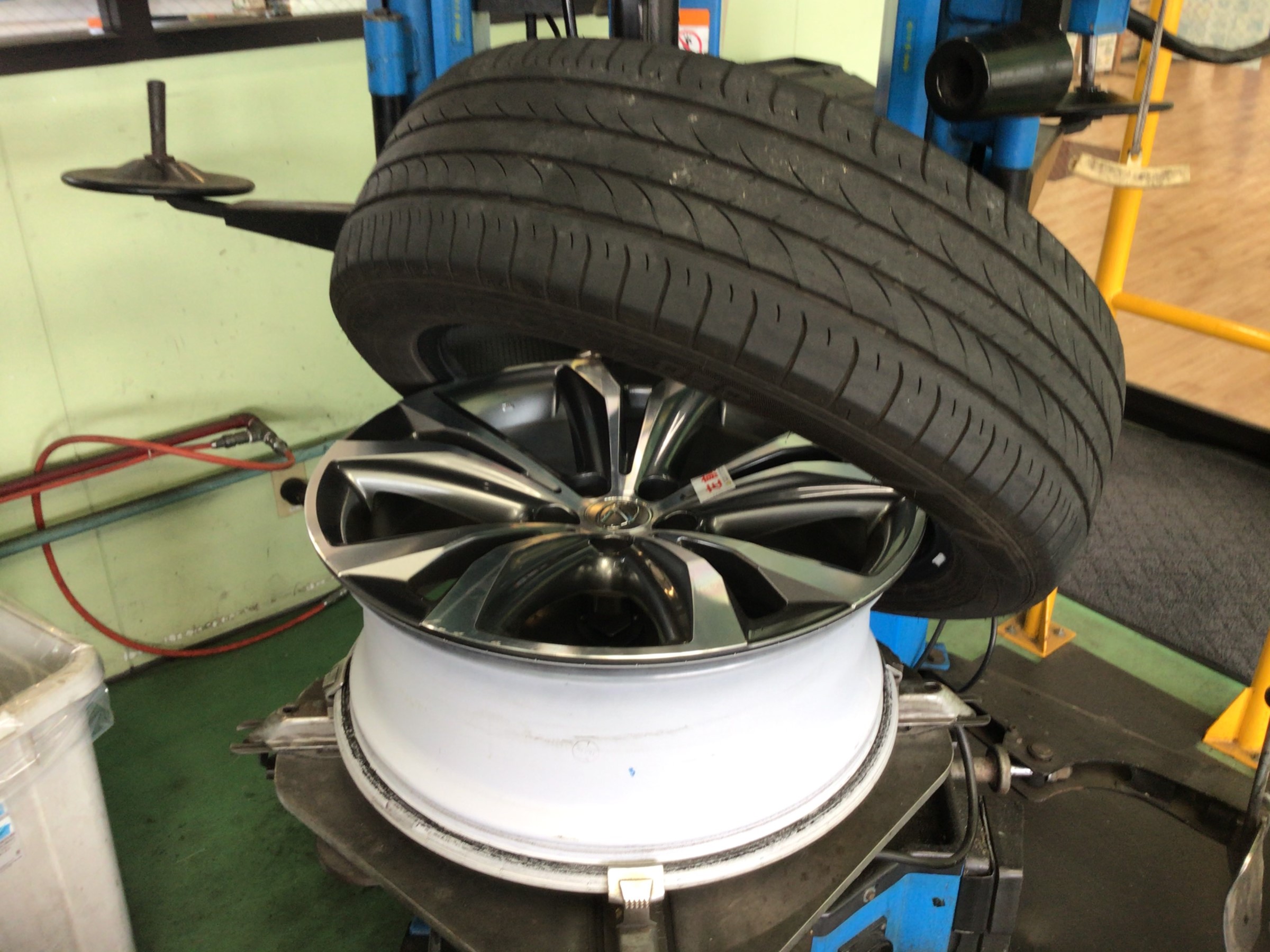 では早速タイヤ交換作業です。まずは古いタイヤを外していきます。