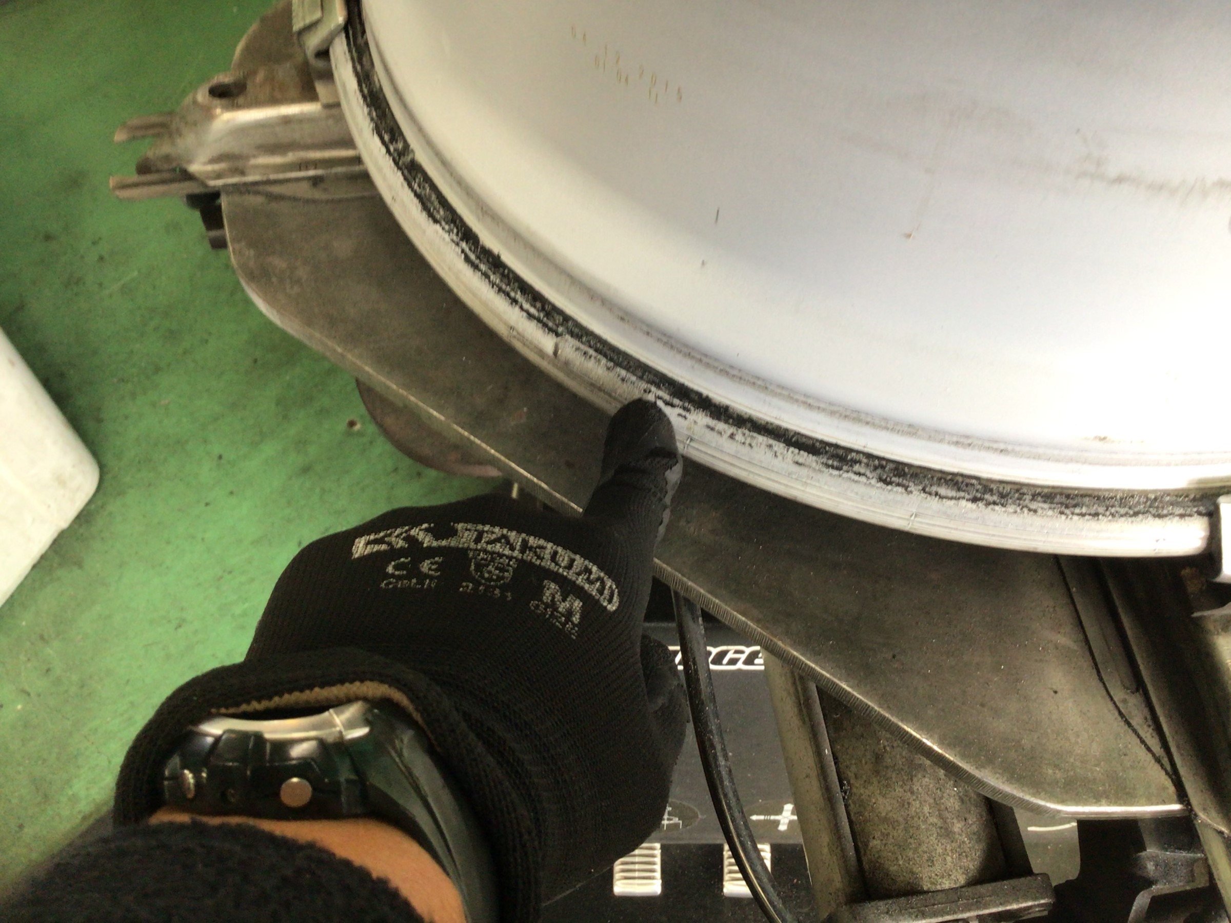 このカスが付着したままタイヤを組付けしますと、エア漏れの原因となりますで、