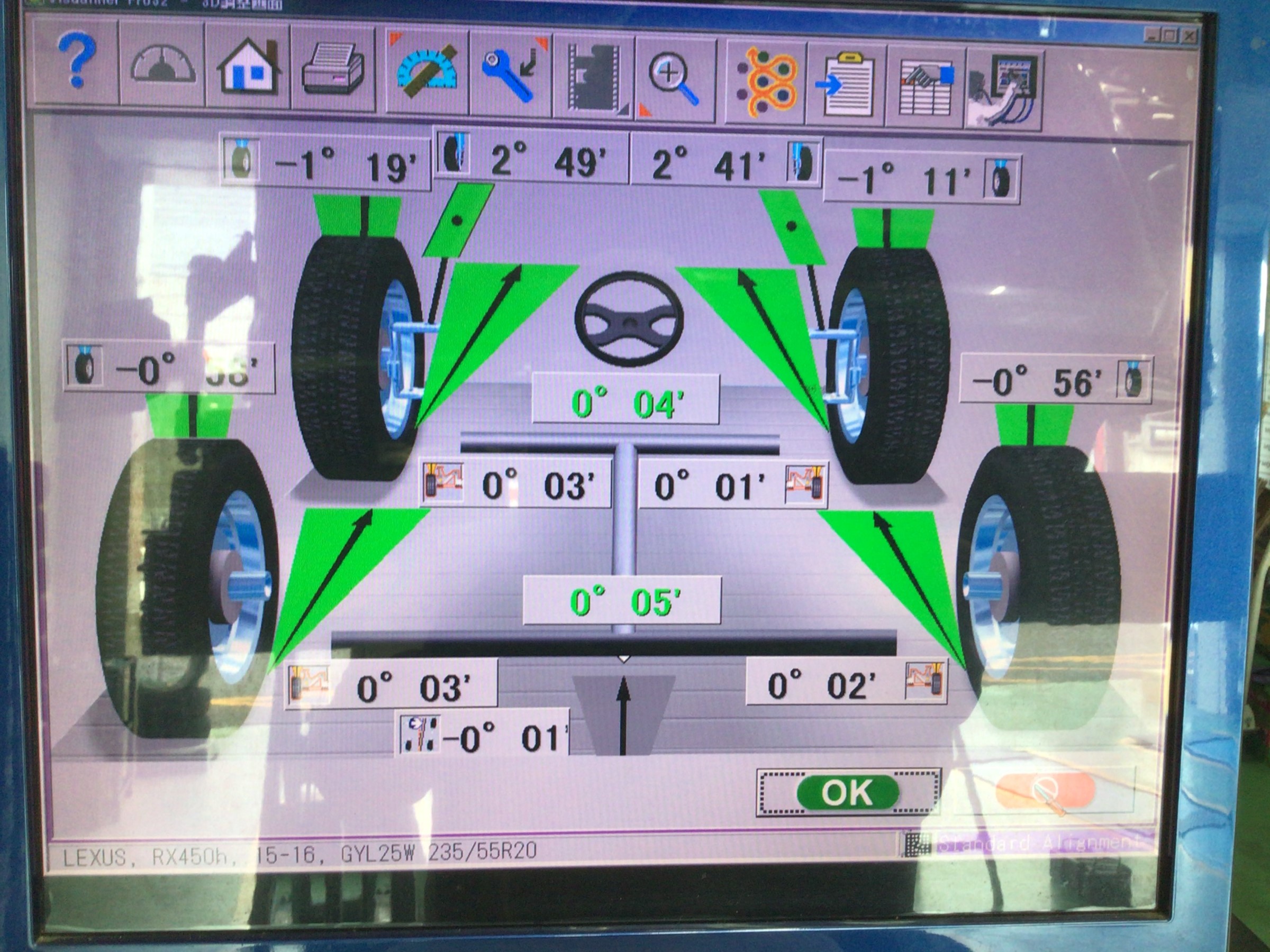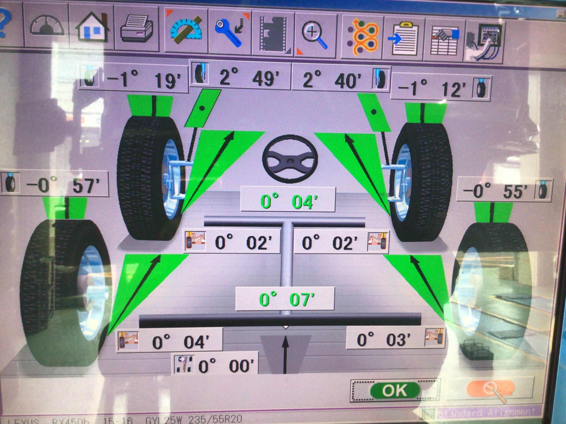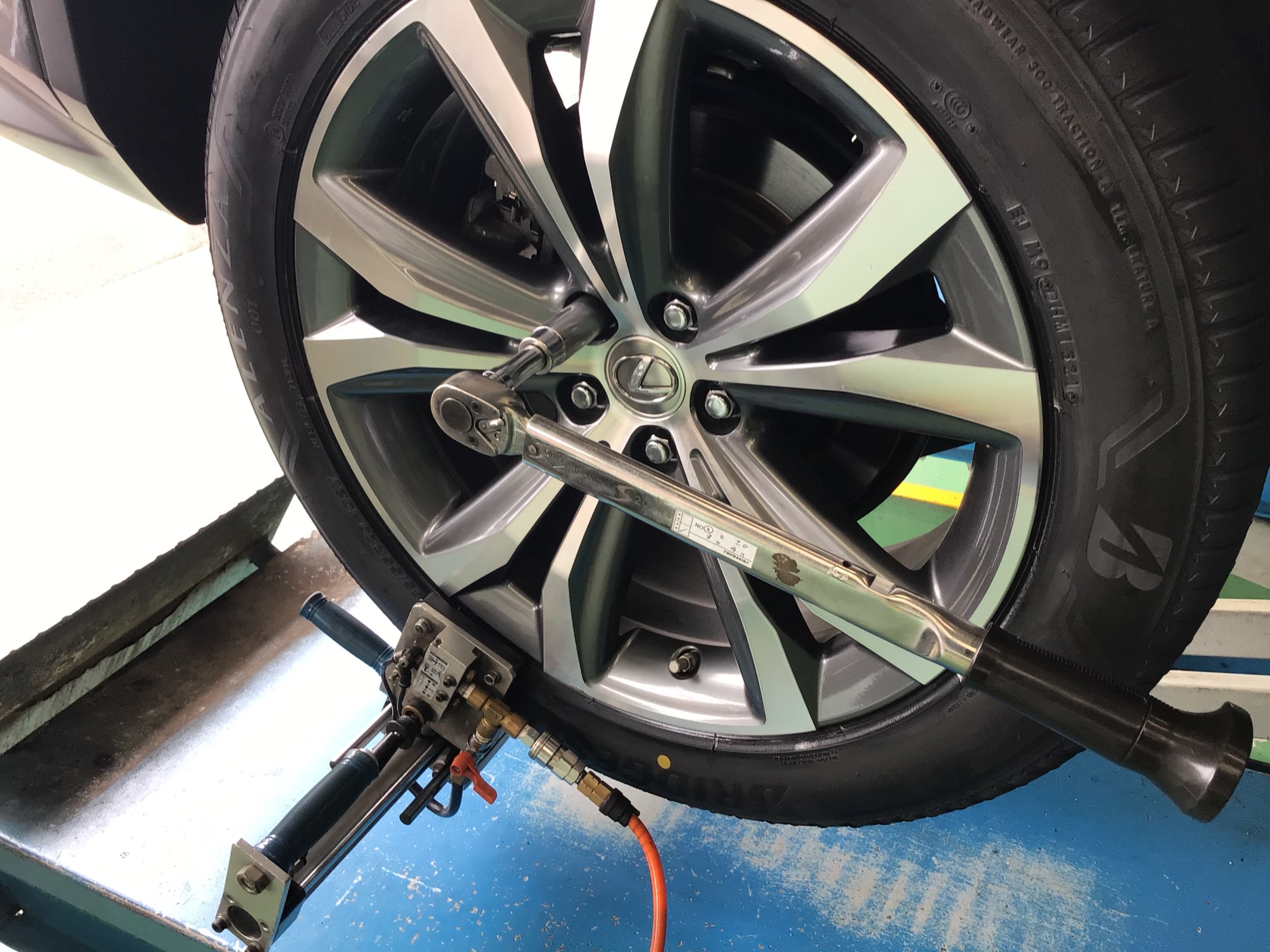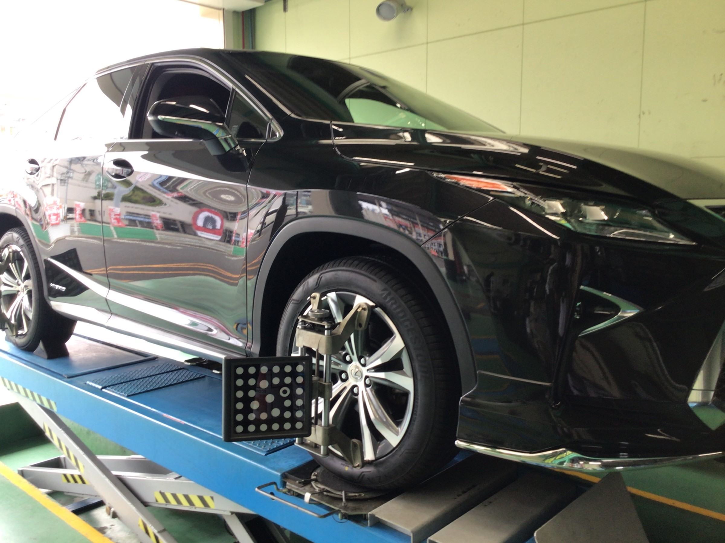 さて本日の話題はというと、レクサス RX450hに夏タイヤ交換&アライメント調整を