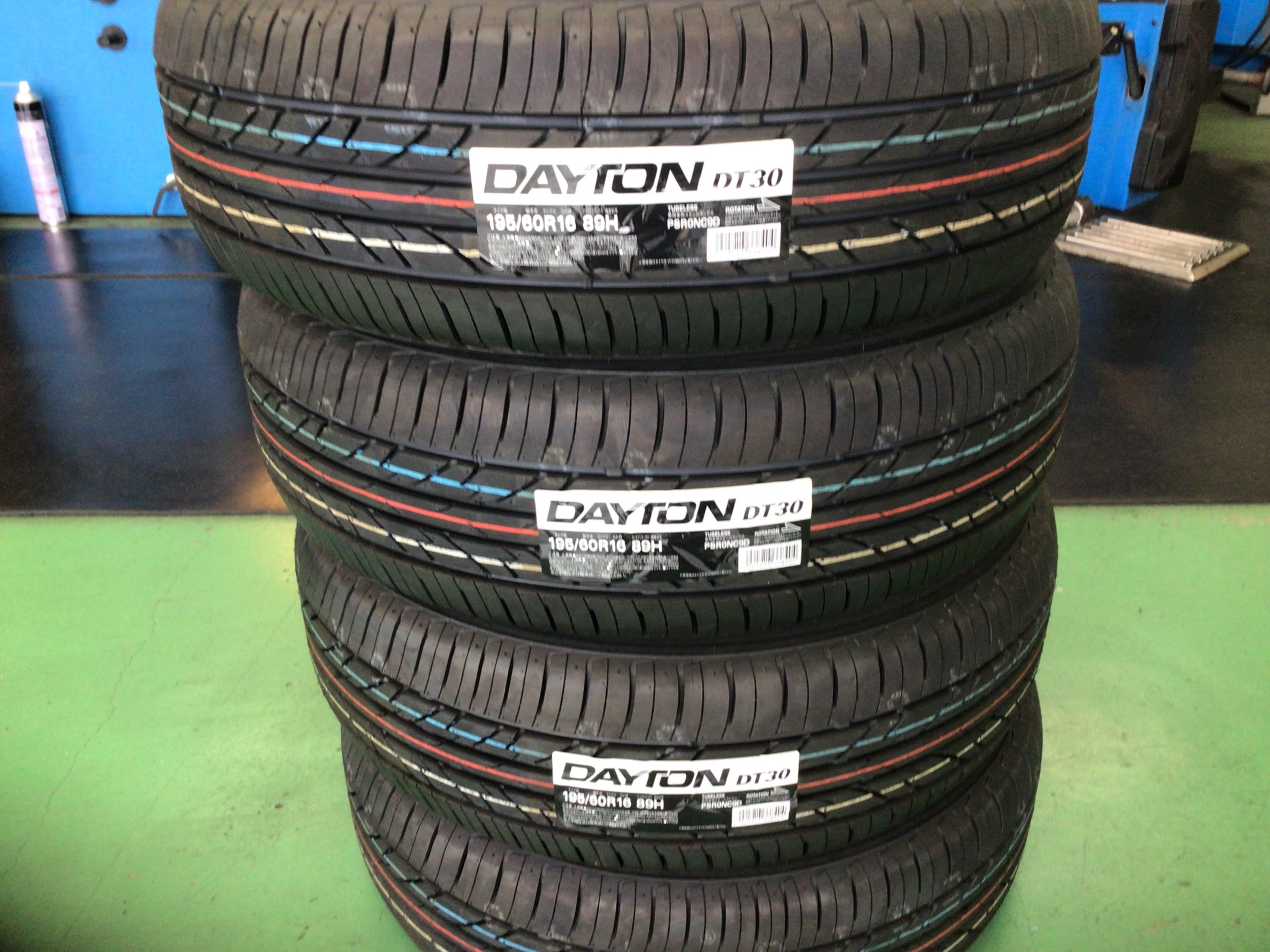 タイヤの銘柄は、デイトン DT30で、サイズは195/60R16です。