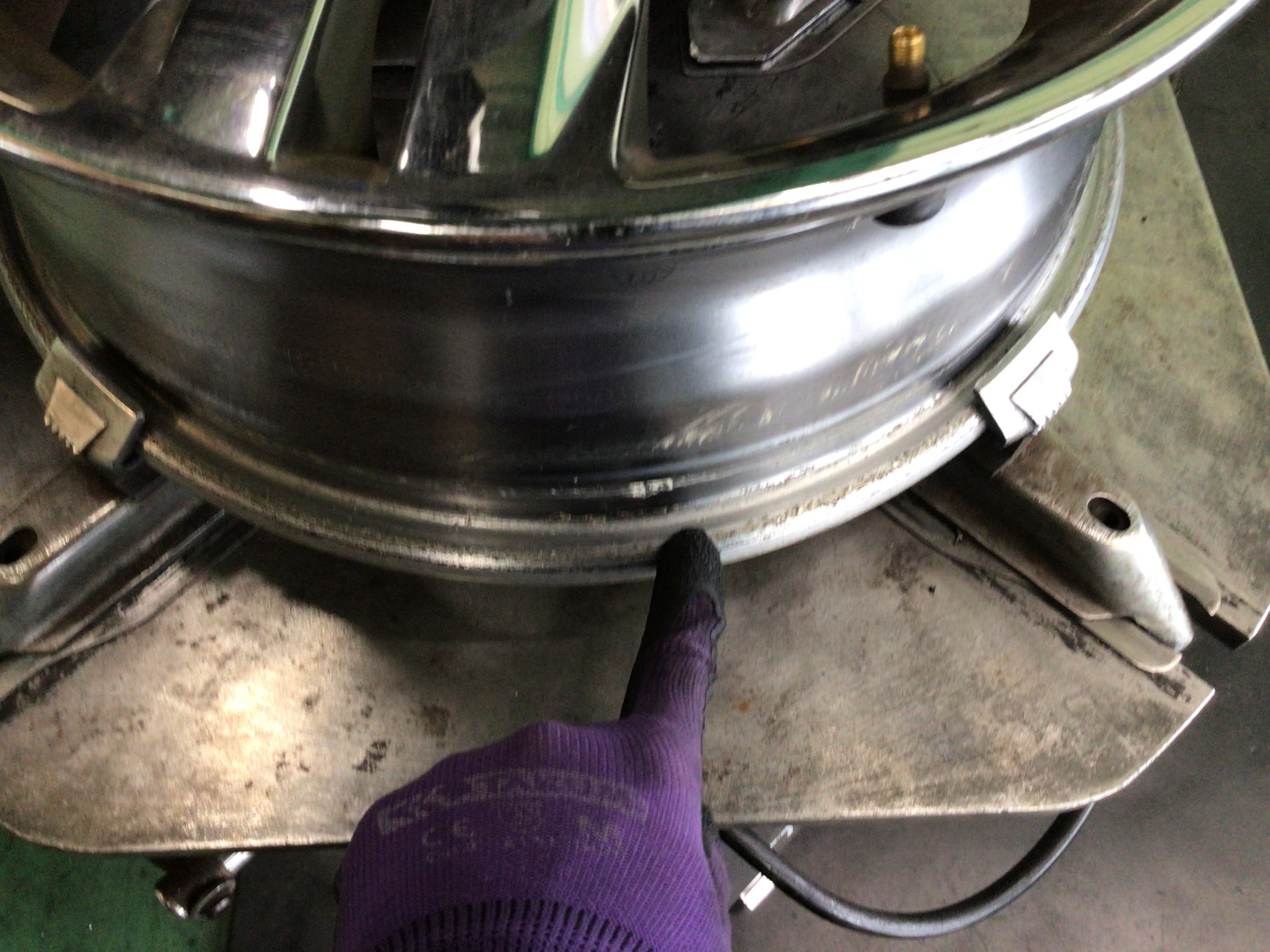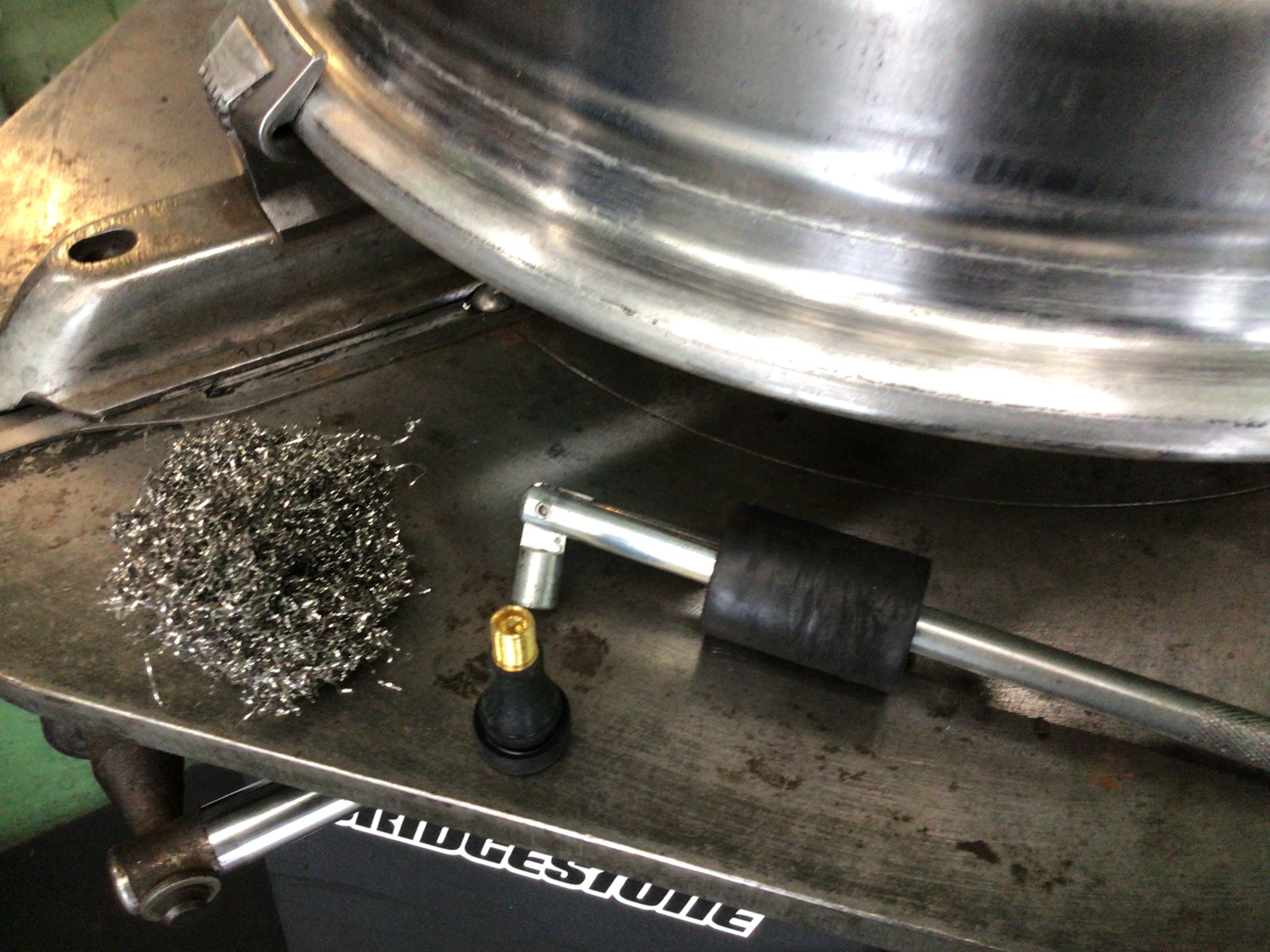 このカスが付着したままタイヤを組み付けますとエア漏れの原因となりますので、