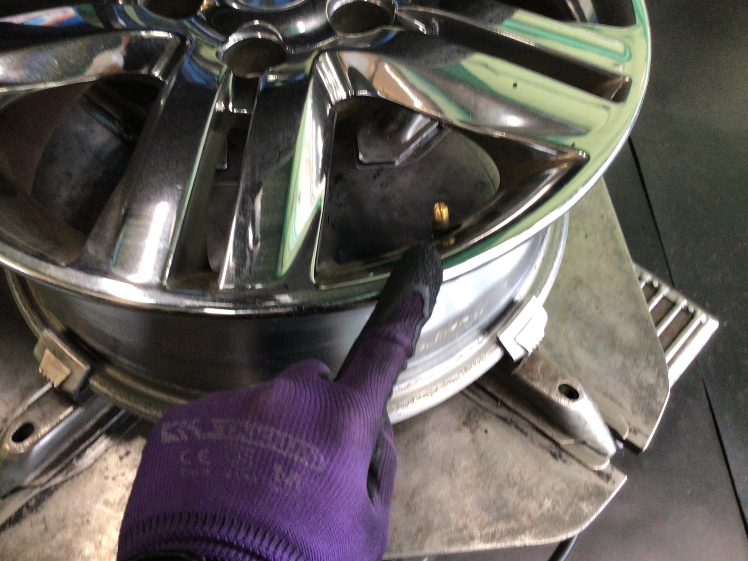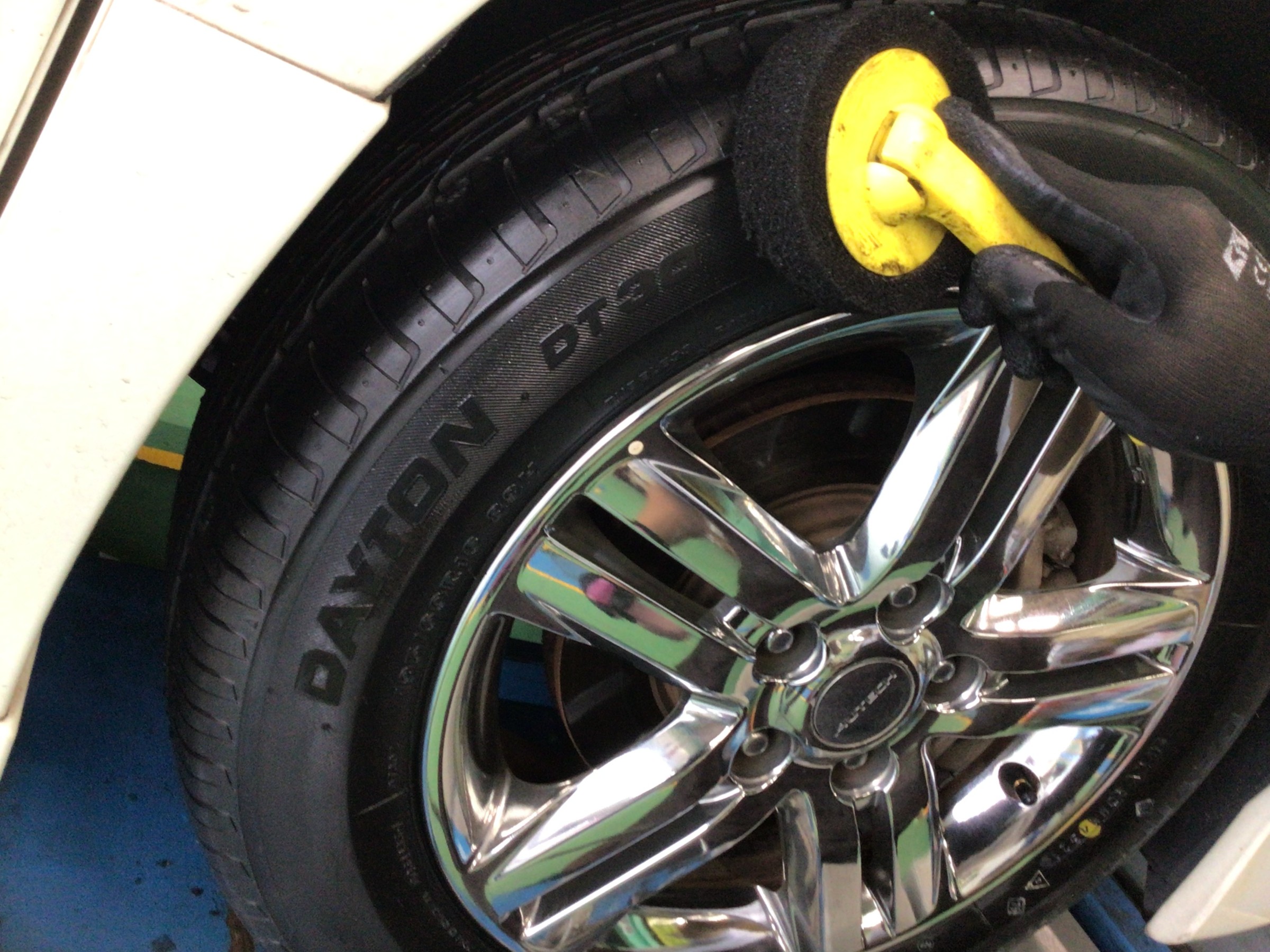 最終仕上げとして、ホイールを清掃しタイヤワックスを塗布してタイヤ交換作業終了となります。