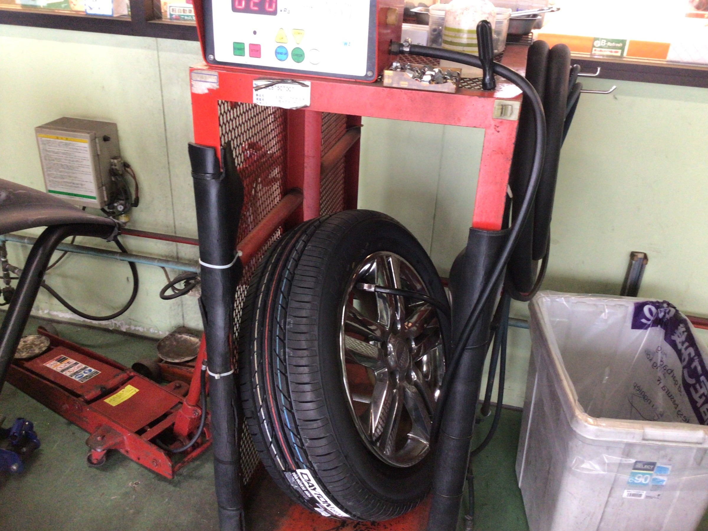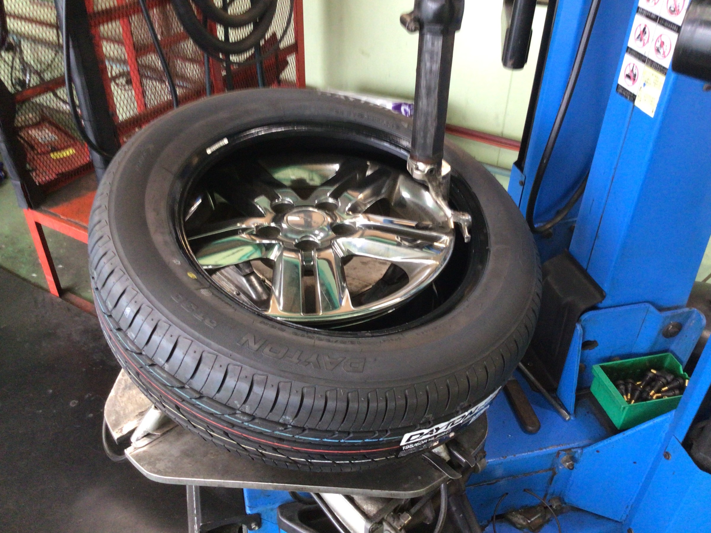 交換清掃後はタイヤを1本づつ丁寧に組み付けていきます。