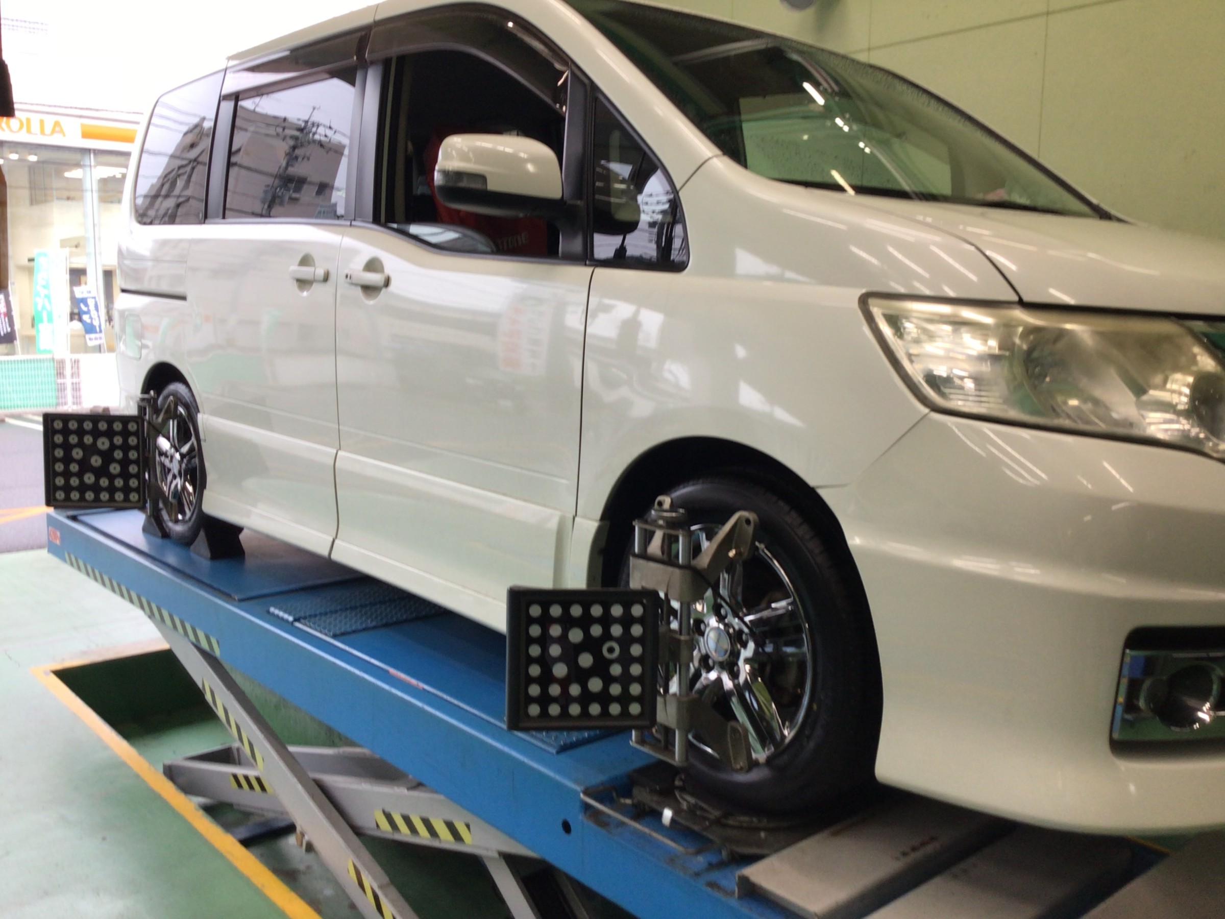 さて本日の話題はというと、日産 C25型 セレナに夏タイヤ交換&アライメント調整をご用命頂きました!