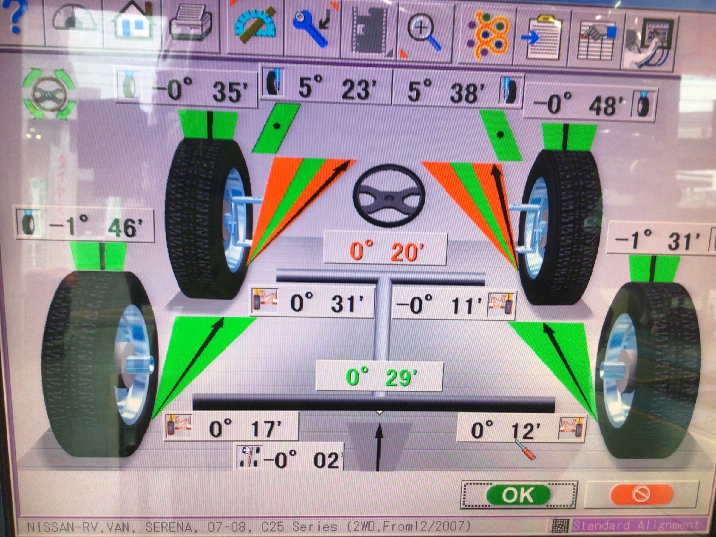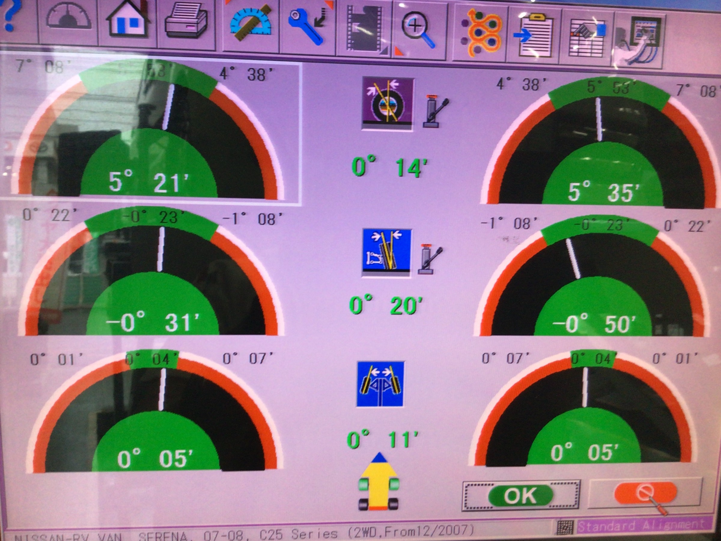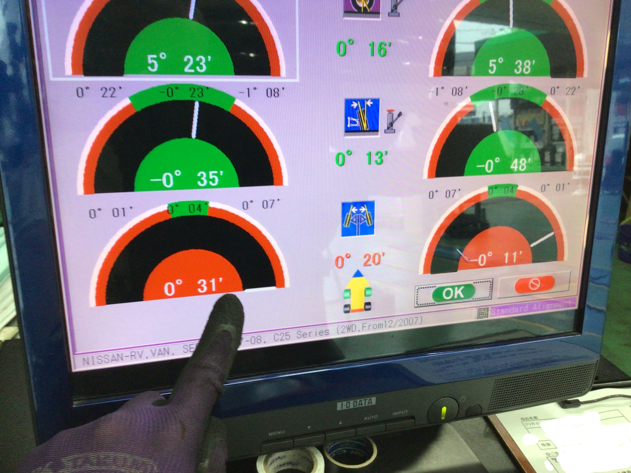 この型のセレナは前輪トーのみの調整可能です。合計2カ所調整車。