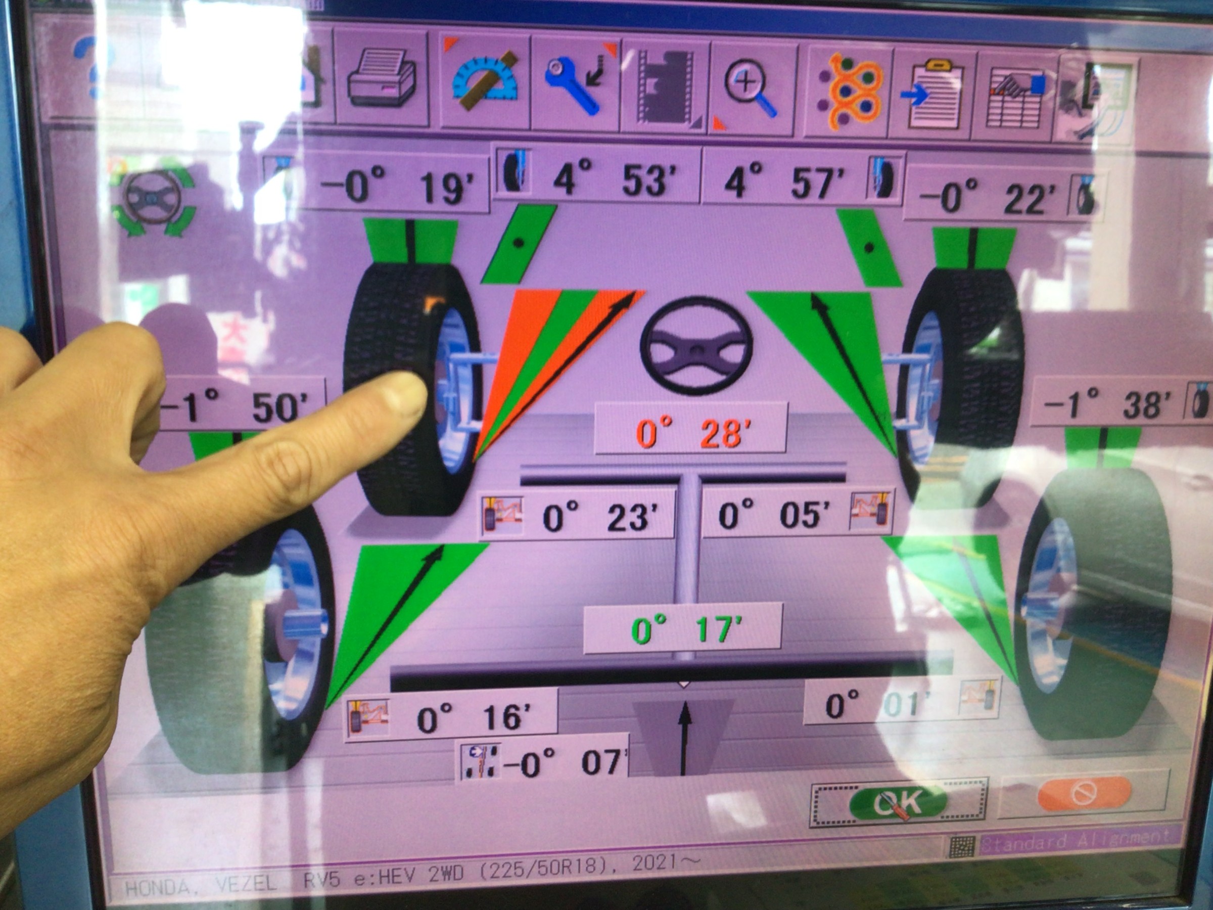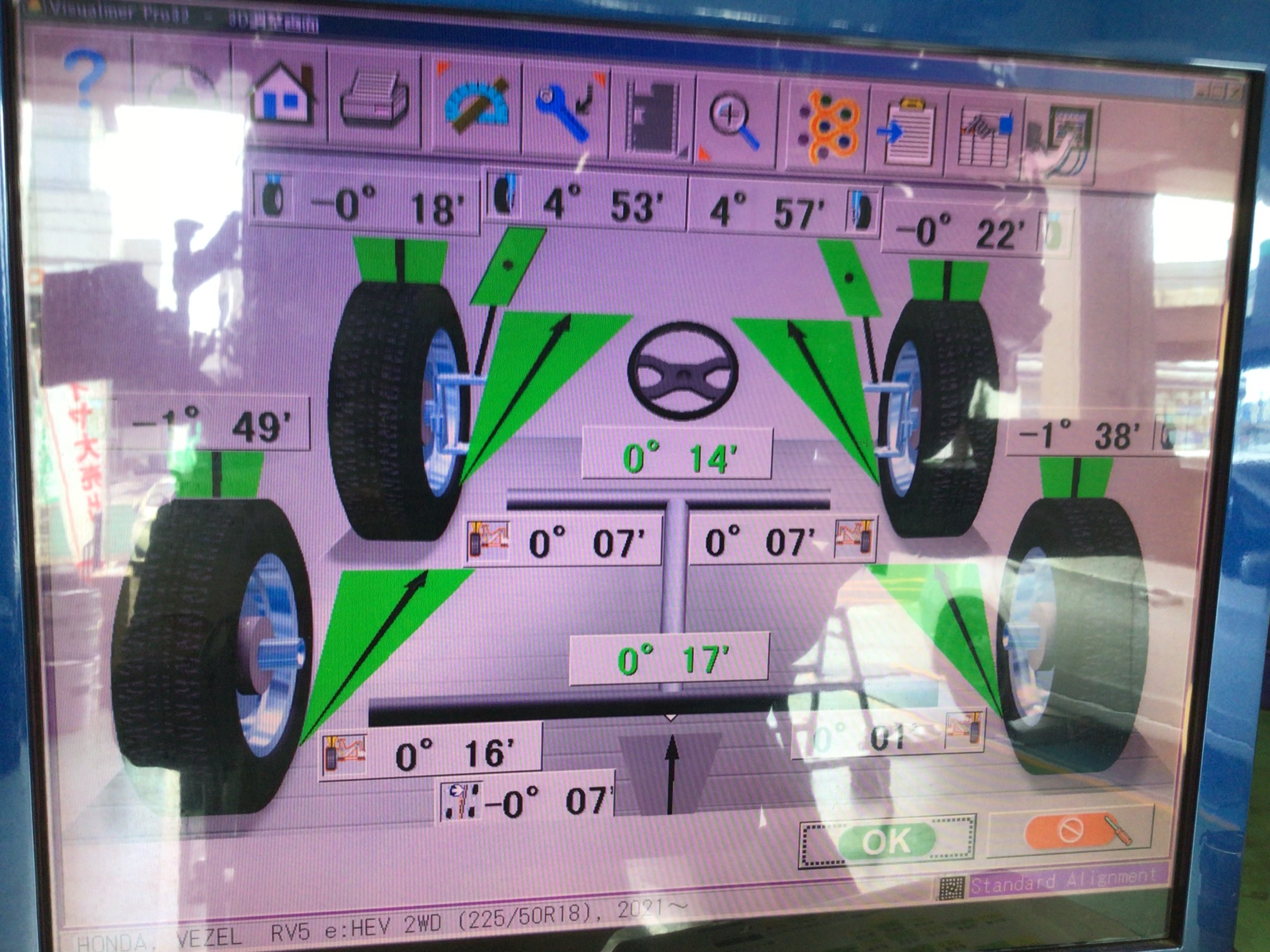 ホンダ RV5型ヴェゼル アライメント調整作業完了です!
