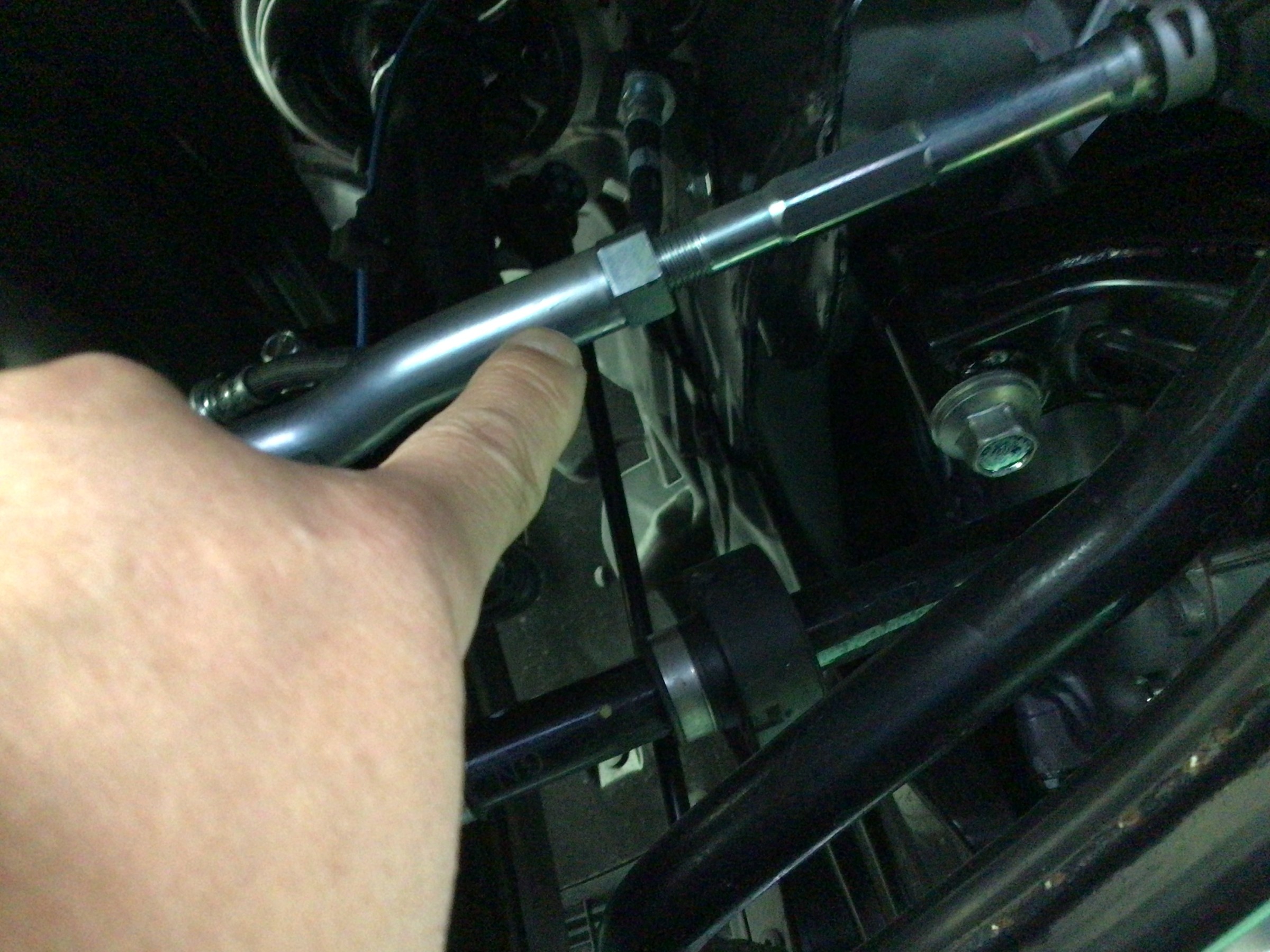左前輪はトーインなので、ロッドを縮める方向ですね(^^♪