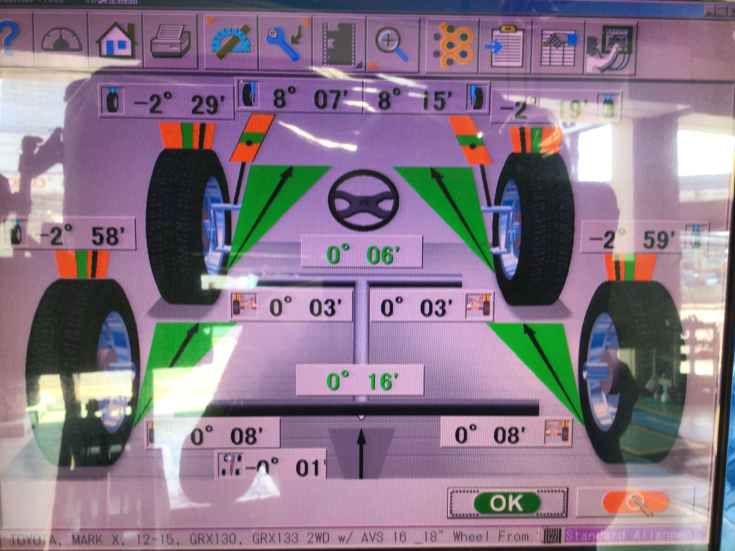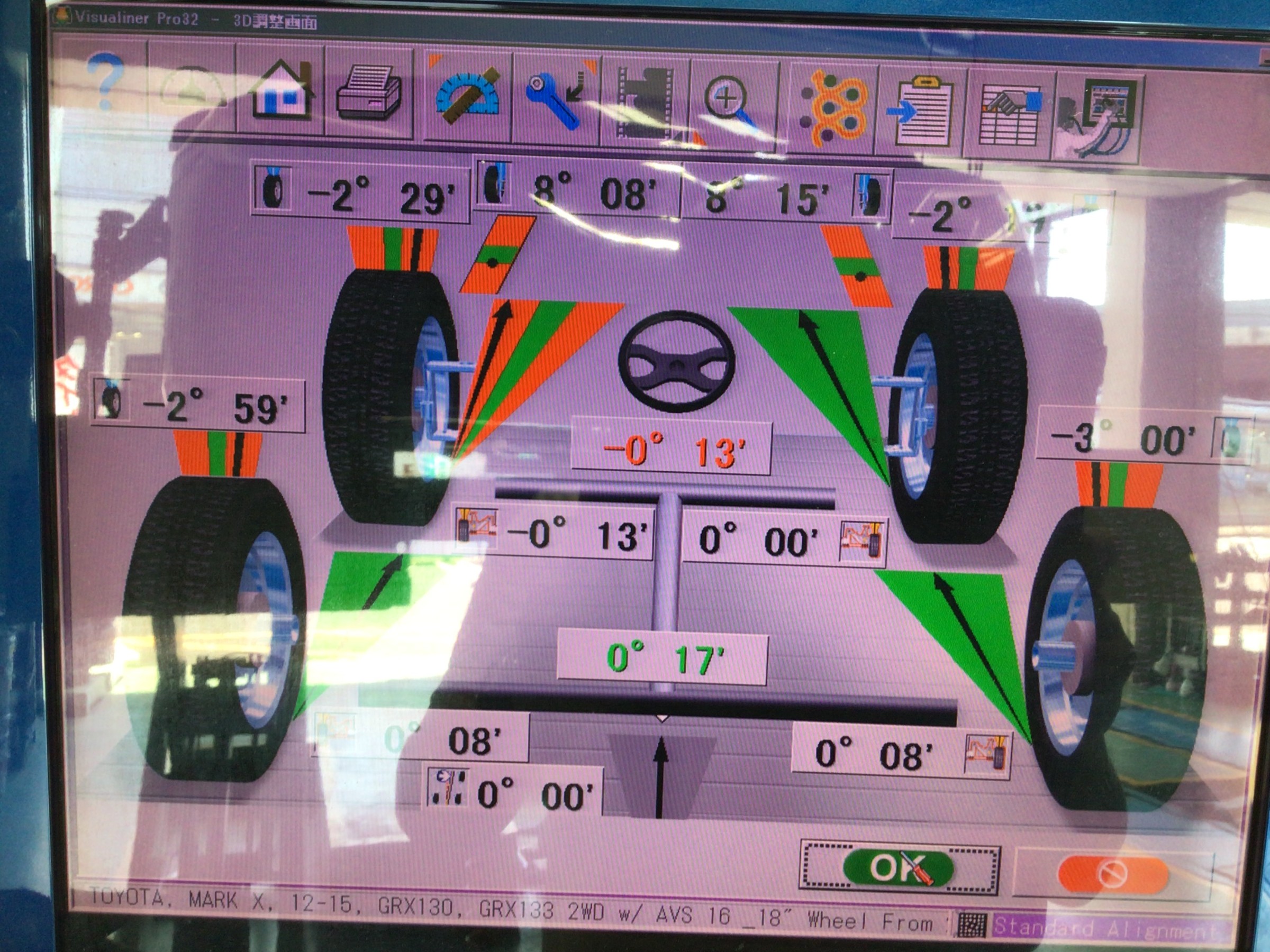 さて本日の話題はというと、トヨタ 130系マークXにアライメント調整をご用命頂きました!