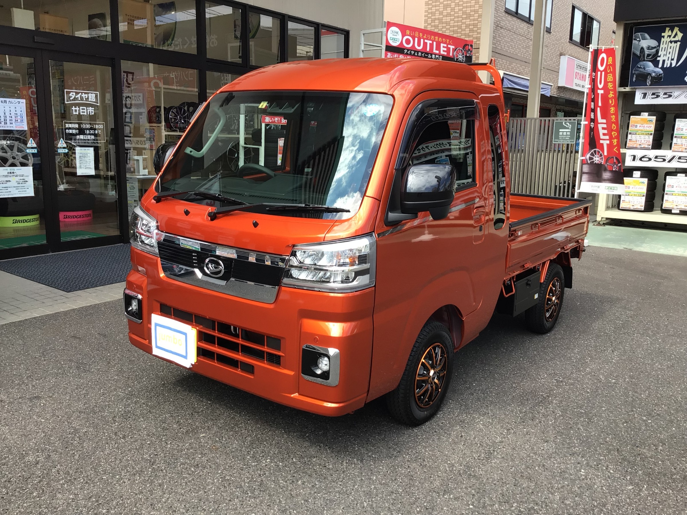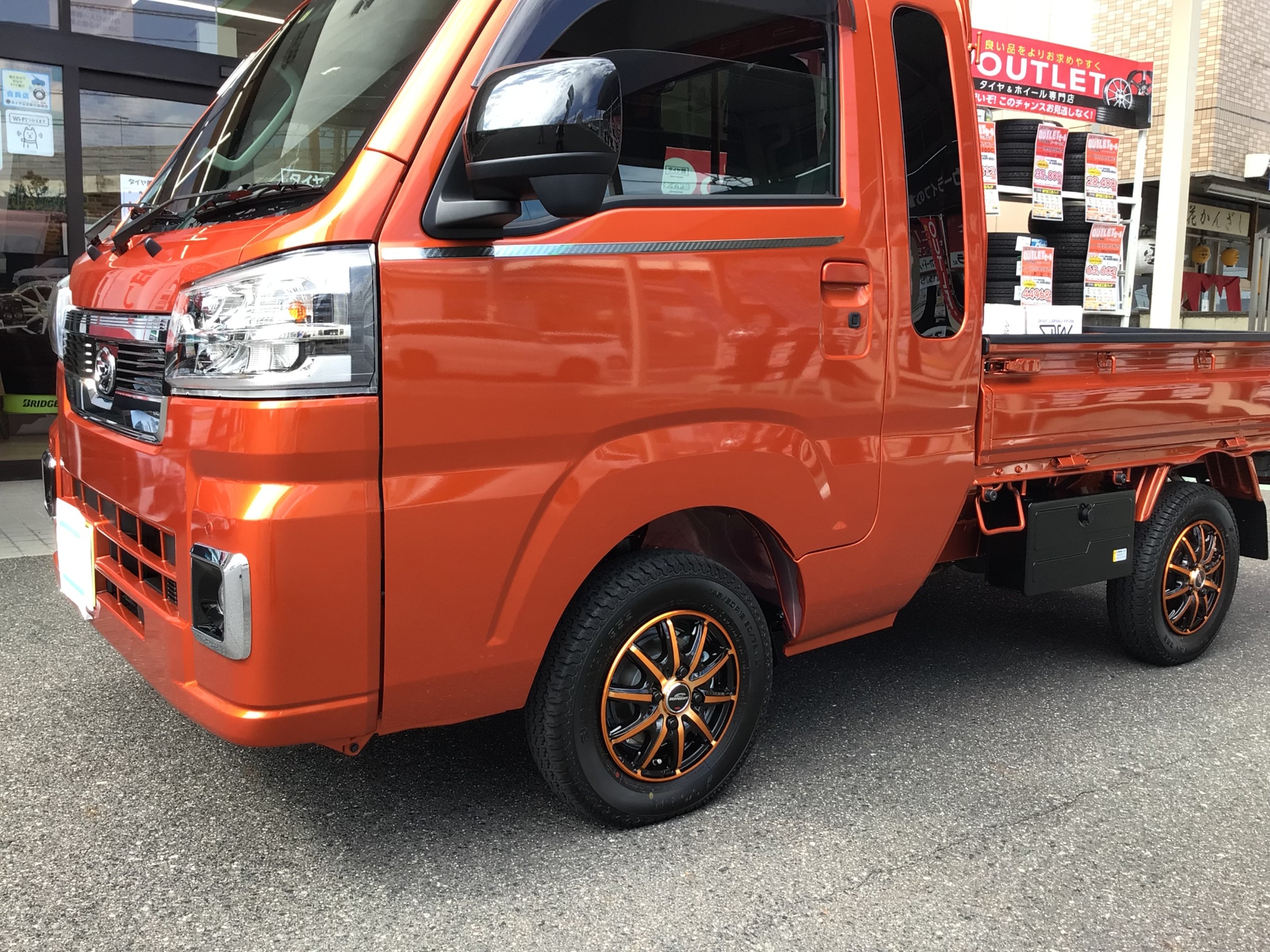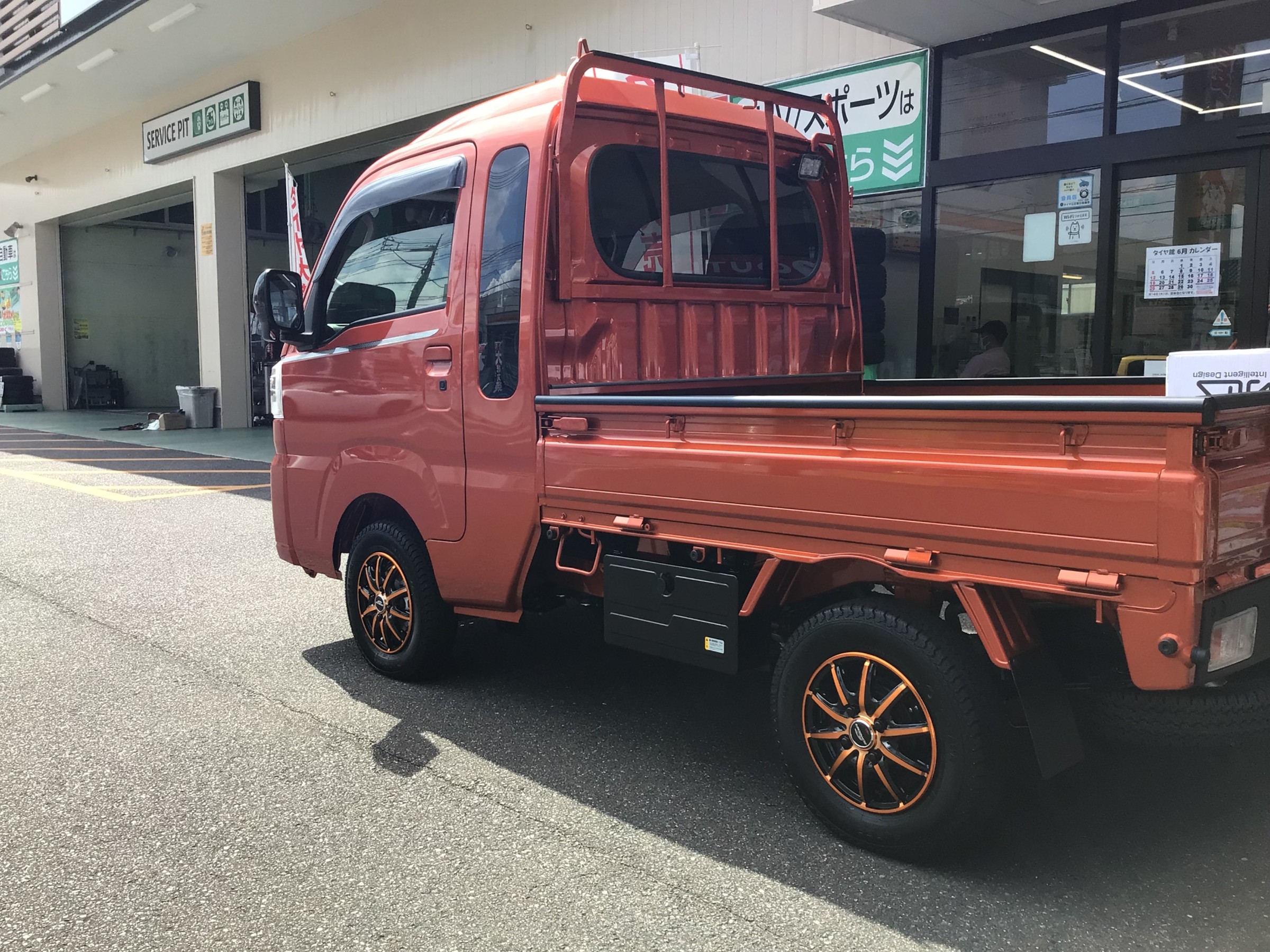 さて本日の話題はというと、ダイハツ ハイゼットにアルミホイール交換をご用命頂きました!